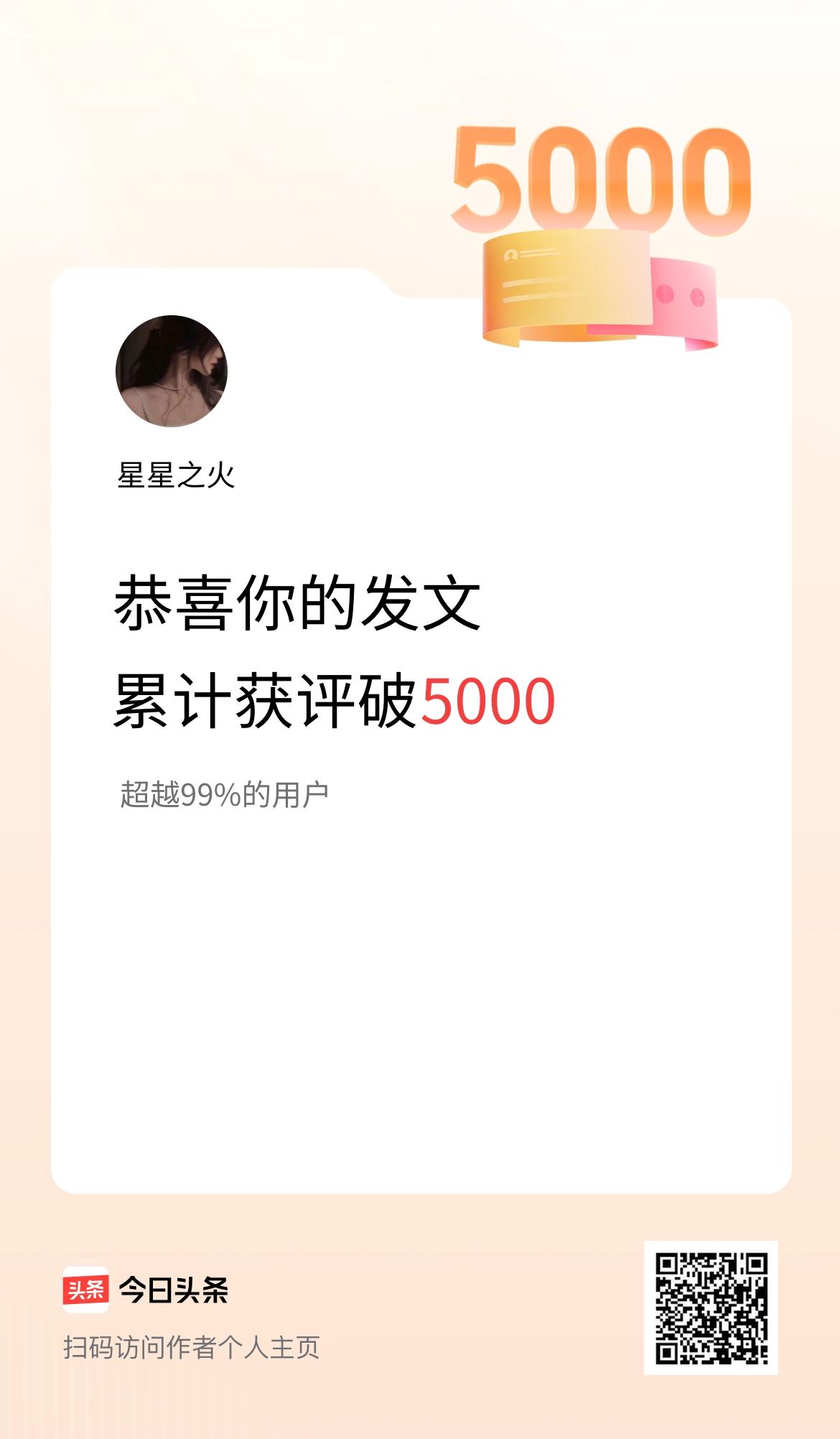 我在头条累计获评论量破5000啦!