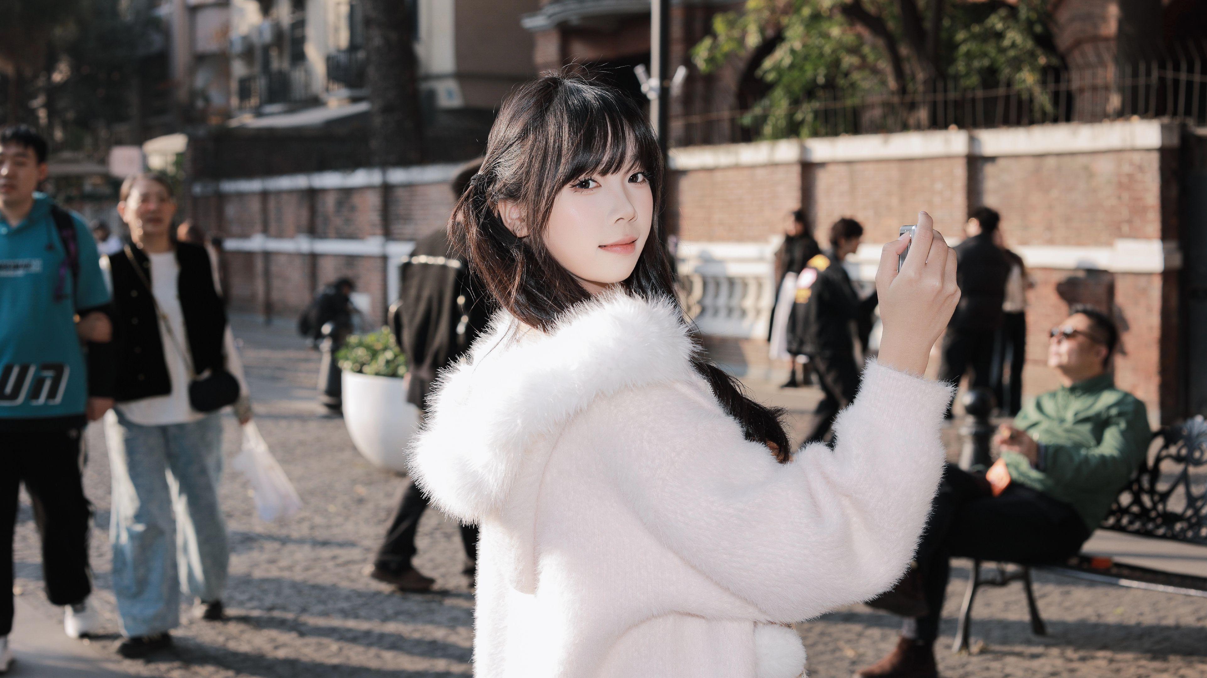 秋末户外摄影作品赏析,一身白色穿搭风,清纯可爱青春靓丽好看的女孩都长啥样的什么