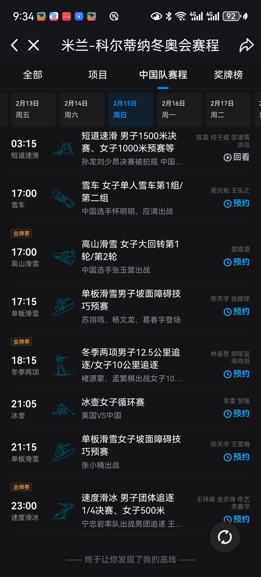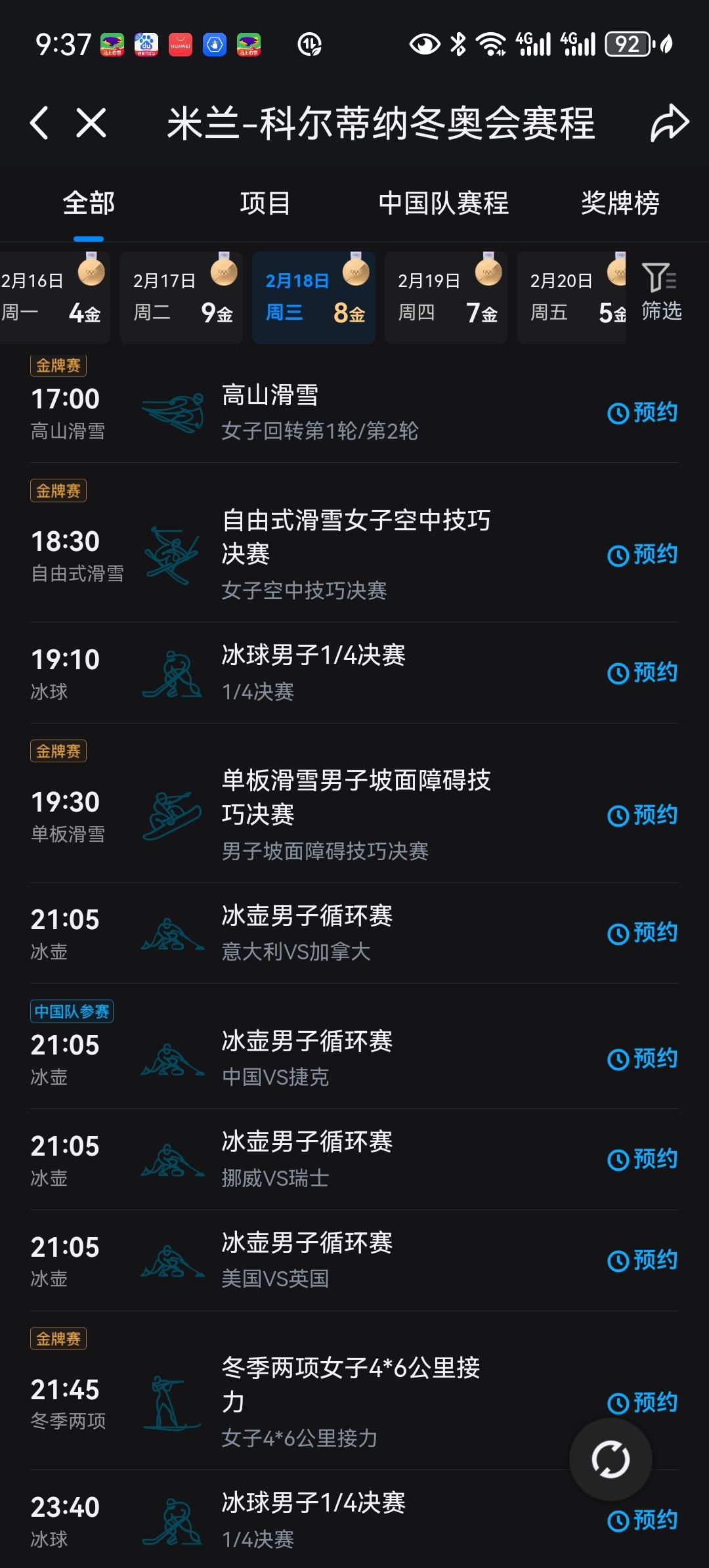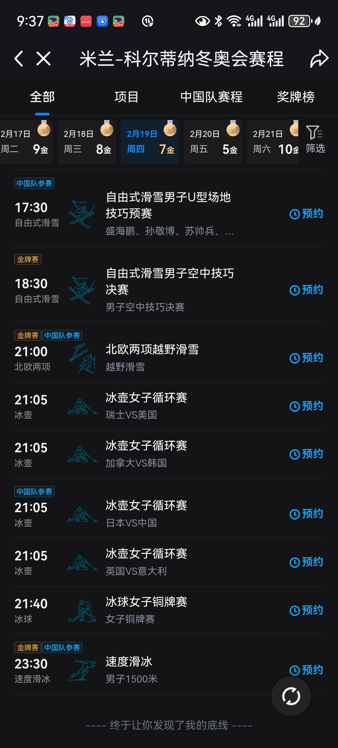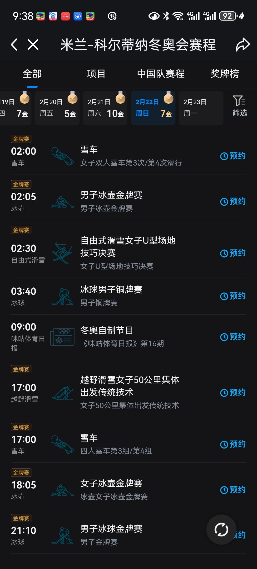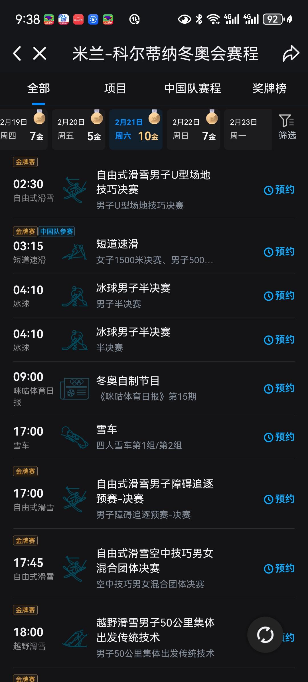 本届冬奥会中国队什么时候才能见到金牌?下面我们根据赛程大致预测一下! 年二十八:没有夺金点 除夕:钢架雪车混合团体(夺金可能性10%),短道速滑女子1000米(夺金可能性5%) 年初一:谷爱凌的大跳台(夺金可能性40%),花样滑冰双人滑(夺金可能性10%) 年初二:女子空中技巧(夺金可能性50%),苏翊鸣的坡面障碍技巧(夺金可能性30%) 年初三:短道速滑男子500米(夺金可能性20%),男子空中技巧(夺金可能性55%),速度滑冰男子1500米(夺金可能性15%) 年初四:没有夺金点 年初五:空中技巧混合团体(夺金可能性60%),短道速滑男子5000米接力(夺金可能性30%),短道速滑女子1500米(夺金可能性5%) 年初六:谷爱凌的U型池(夺金可能性90%)