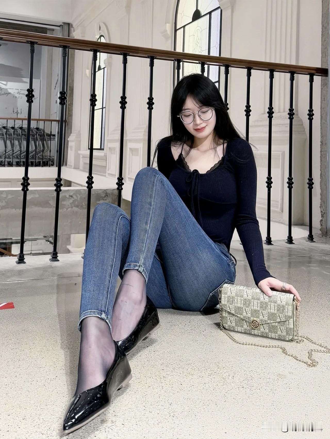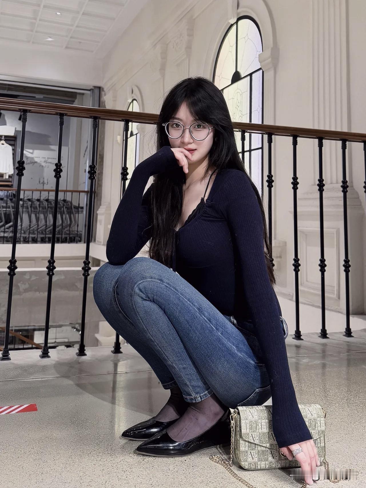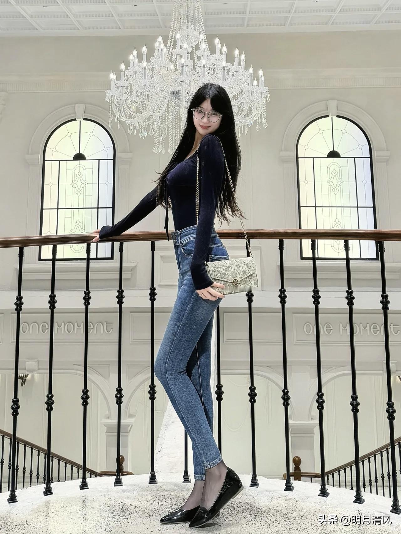 白墙、拱窗、楼梯间,这个场景也太适合拍照了。 我最喜欢第4个动作:背对镜头站在吊灯下,腰身轻轻扭回来,肩膀微沉,眼神刚好回望。黑色针织衫的袖子盖住一点手背,链条包斜落在腰侧,背景是对称的拱窗和暖黄吊灯——这一帧有复古电影那味了。 整组照片从抬手顶头、落地抱膝,到俯身靠栏、台阶侧坐,基本把楼梯间的结构用全了。黑色+牛仔蓝在白墙前面特别干净,不用大动作,微微侧身、低头笑一下就很出片。 你看中第几个了? 年底的快乐是卡罗拉给的拍照技巧