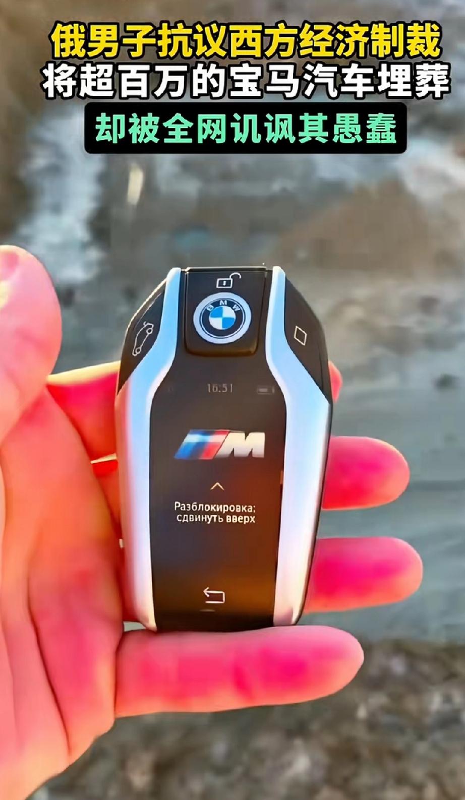 俄罗斯一男子为了抗议西方经济制裁,把自己的百万豪车宝马用水泥给掩埋,宝马公司CEO:查一下这车他付完款没有? 手下:付完了。 CEO:那没事了。 给这个男的提出表扬,他最起码没有砸别人的。