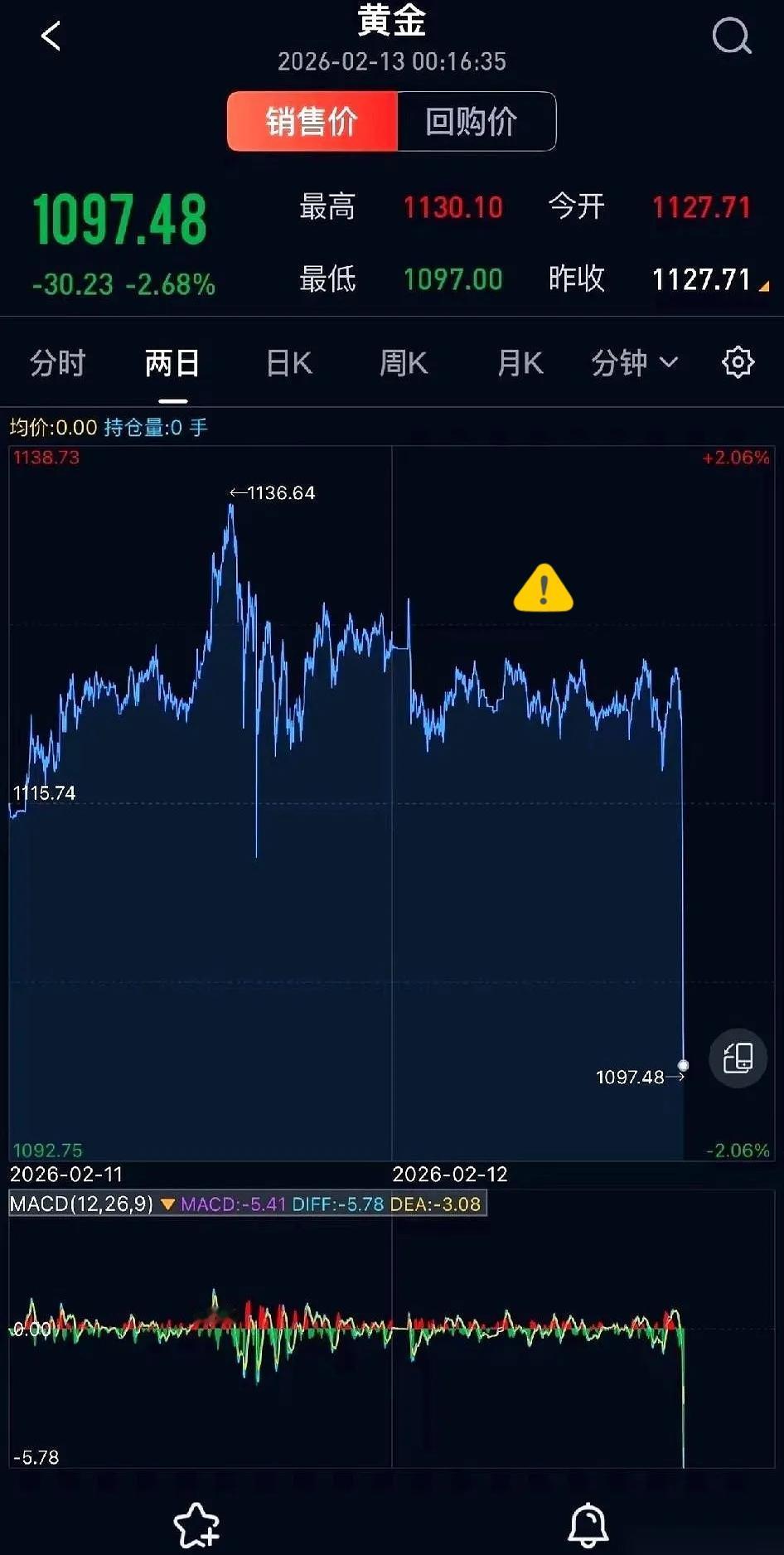 半夜起来上厕所,顺手抄起手机看了一眼。 我直接一个激灵,醒透了。 黄金这是干嘛?从1121直接奔着悬崖去了?一晚上干掉快200刀? 脑子一热就想抄底拉均价,手忙脚乱又补了仓,还幻想着第二天就能反弹回血。 结果天亮一看,价格还在跌,心彻底凉透。 最折磨人的根本不是亏钱,是手里子弹已经打光,眼睁睁看着机会摆在眼前,却一分钱都掏不出来,那种无力感真的太煎熬。 投资千万别梭哈,更别情绪化追涨杀跌,留好余地,才不会被市场牵着走。 你们有没有过这种抄底抄在半山腰的经历?评论区说说,互相安慰一下!