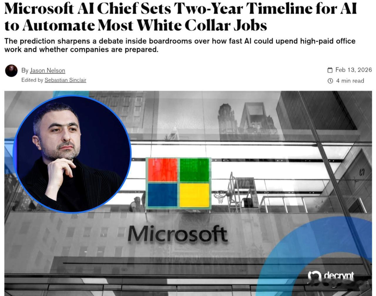 微软人工智能首席执行官穆斯塔法·苏莱曼预测,随着人工智能在办公岗位上的表现接近“人类水平”,大多数白领工作很快就能实现自动化。 他告诉《金融时报》,人工智能将在 12 至 18 个月内完全自动化大多数专业任务,例如律师、会计师、项目经理和营销专业人员的任务。 苏莱曼补充说,就连微软的工程师现在也大多使用人工智能进行编码,并指出这些模型在性能上超过了许多程序员。