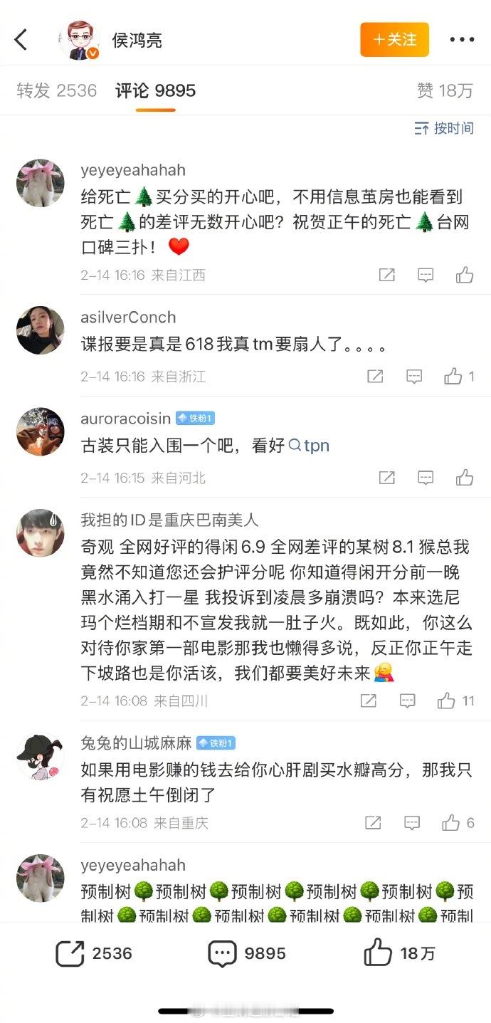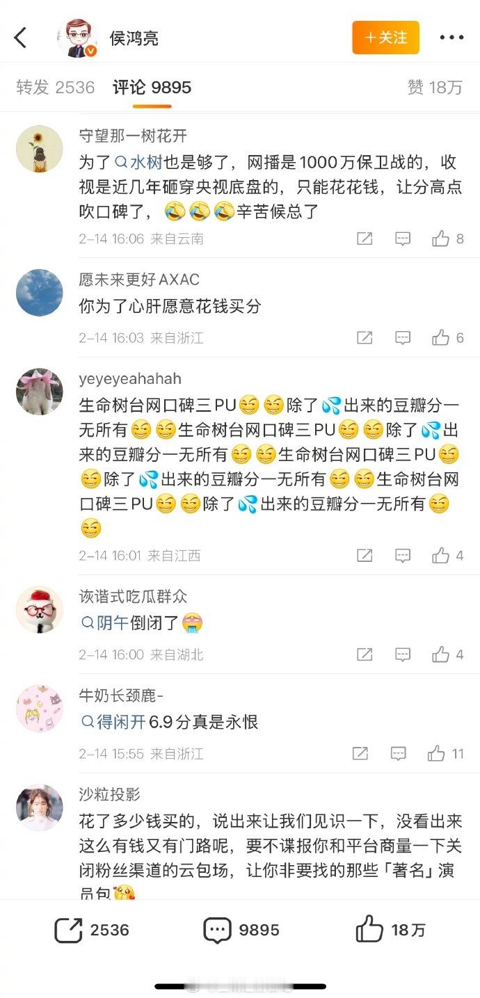 《生命树》开分后侯鸿亮的评论区