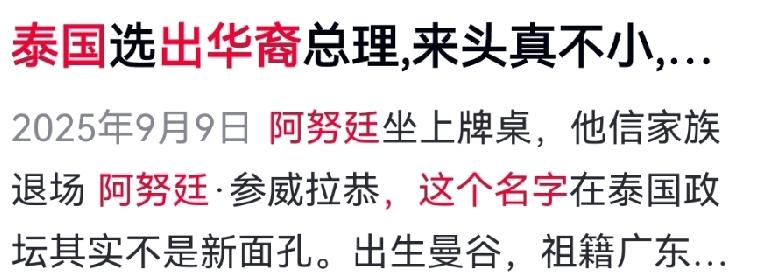 摊牌了!阿努廷不再低调,直接亮出“陈锡尧”这个中文名,一举拿下泰国华裔的“正统”地位。 这步棋有多狠?看看家谱就知道——父母祖辈全员中国籍,阿努廷根本不是什么“华裔后裔”,他就是生在曼谷的纯正中国人。反观他信,曾祖父起就开始混血,代代娶泰妻,到这一辈华人基因早被稀释成25%,连句完整中文都说不出口。 最致命的,是那口流利的广东话。阿努廷家里每天上演“粤语原声”,传统习俗刻进骨子里;他信除了顶个中文姓,里里外外全是泰式思维。当阿努廷用家乡话谈笑风生时,他信那张“感情牌”当场哑火——你拿什么跟人家认亲? 在讲究宗族乡情的东方语境下,一个能用方言唠家常的“自己人”,显然比只会说泰语的政客更具分量。血统从不说谎,北京的目光投向谁,答案早已写在家谱里。 中泰合作的下一座桥,怕是要换个更“正宗”的人来修了。 对此你怎么看?