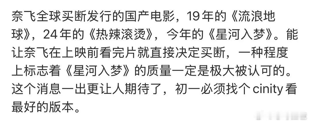 越来越期待《星河入梦》正式上映了网飞买断的国产电影只有3部星河入梦是26唯一一部