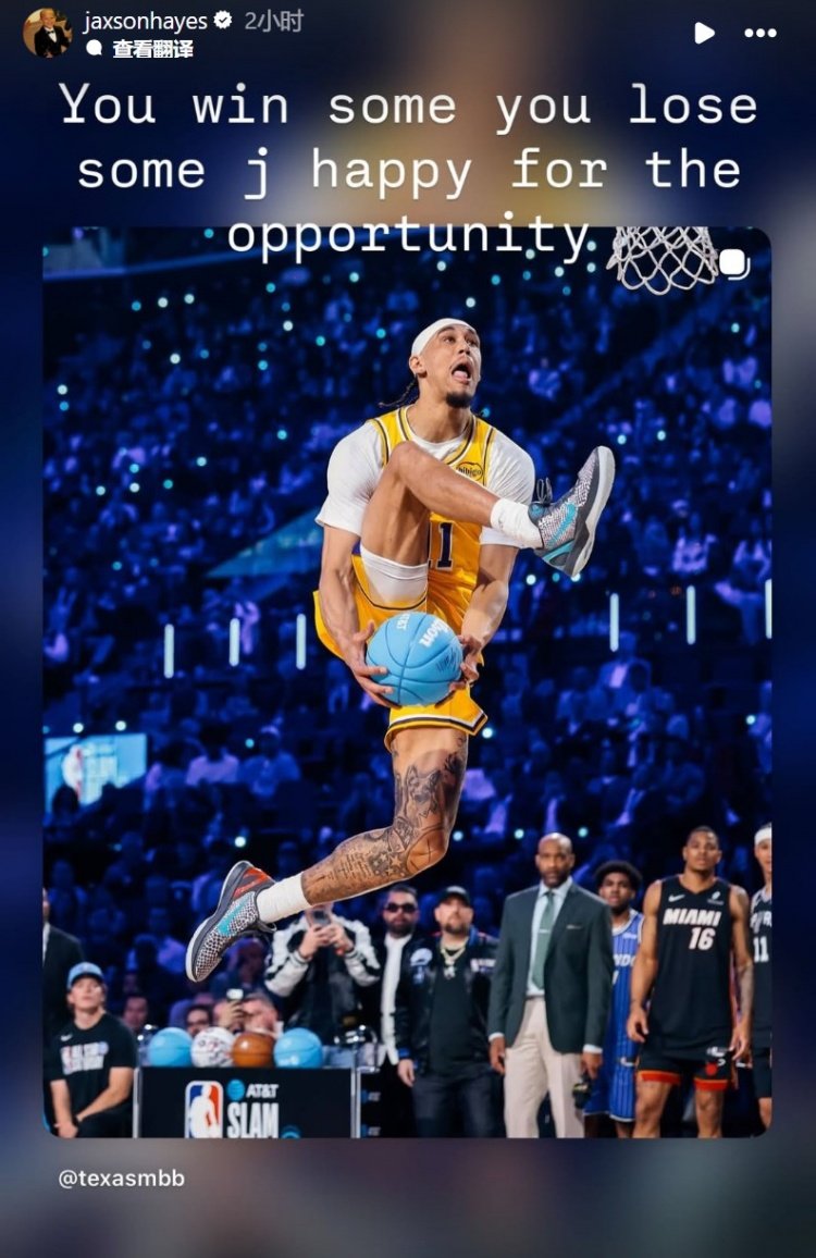 赛后,海斯在社媒晒出了自己扣篮的瞬间并写道:“胜败乃兵家常事,为能拥有这次机会感到高兴。”