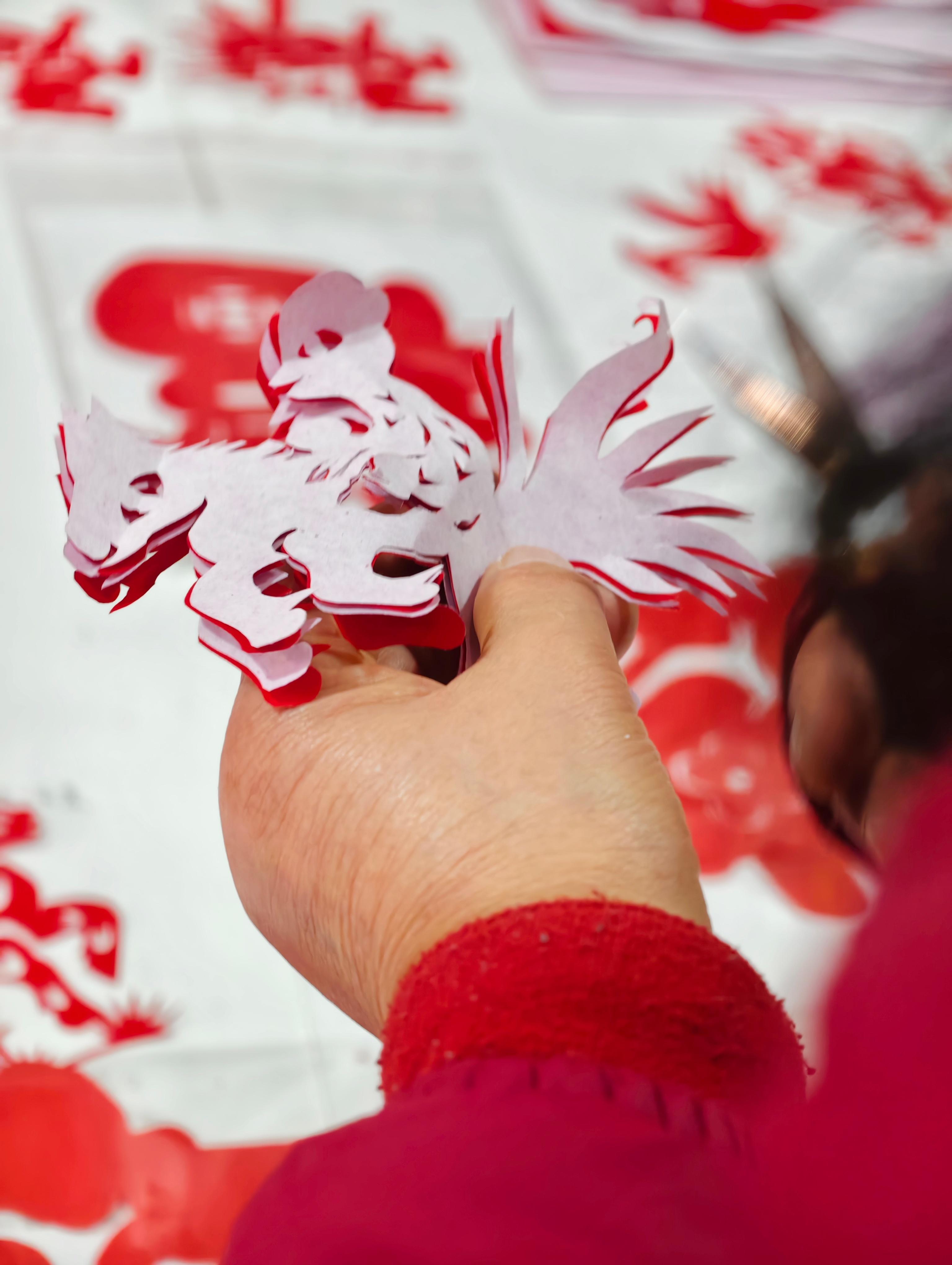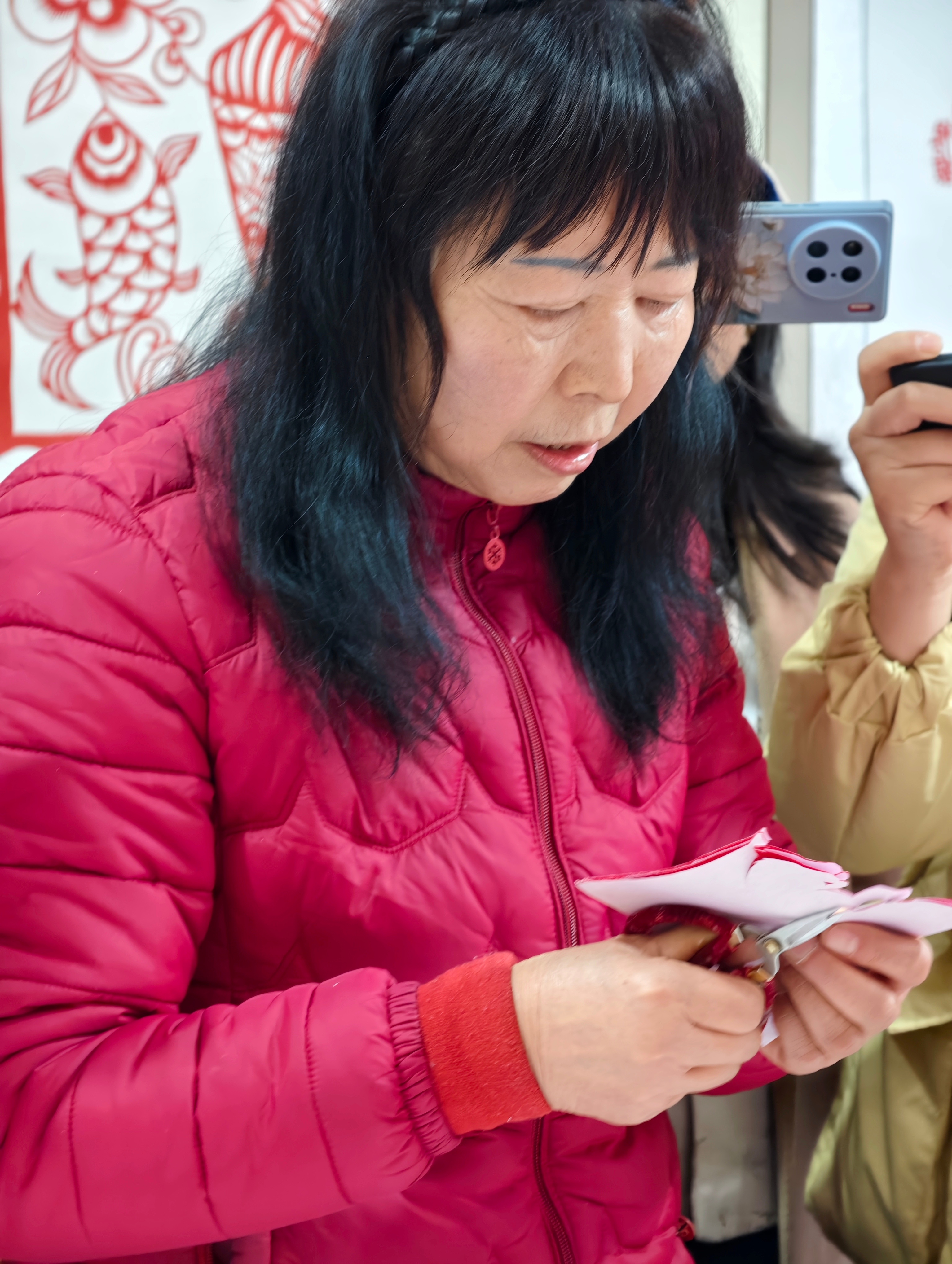 第一站,拜访了剪纸非遗传承人徐引娣,剪刀在她手中仿佛有了生命,红纸翻飞间,一幅幅精巧的窗花跃然纸上。在我看来,这不仅是创意剪纸,是吉祥,是祝福,更是奶奶辈传下来的年味记忆。