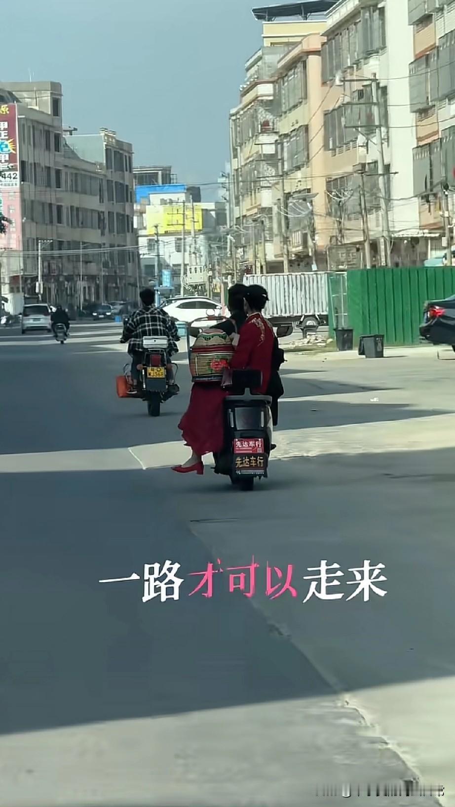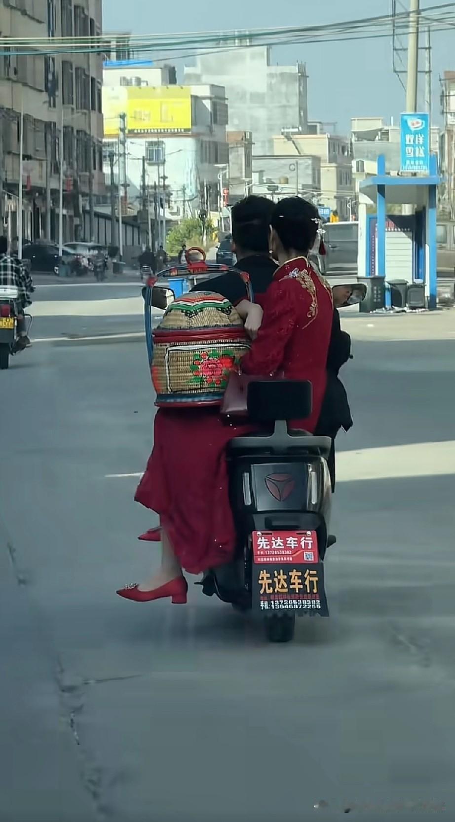 没有豪车,没有排场, 潮汕这对新人的电动车婚礼,却看哭了无数人 今天刷到一段视频,在潮汕的街头,一对新人没有豪车开道,没有盛大的车队,就骑着一辆黑色电动车,把简单的日子过成了诗。 新娘穿着一身红裙,脚踩小红鞋,紧紧抱着一个绘着大红花的竹编篮子,那里面装的是潮汕出嫁必备的“分家饭”。她侧坐在后座,一手挽着新郎的腰,一手扶着篮子,脸上是藏不住的笑意。 没有风风光光的排场,没有轰轰烈烈的誓言,只有一辆电动车,载着两个人,驶向属于他们的小家。有人说这太寒酸了,可我却觉得,这才是爱情最本真的样子。 幸福从来都不是用豪车和彩礼来衡量的,而是那个愿意陪你一起,骑着电动车,把平凡日子过成糖的人。这样的婚礼,简单,却足够动人。 你说,这样的爱情,你羡慕吗?🔥
