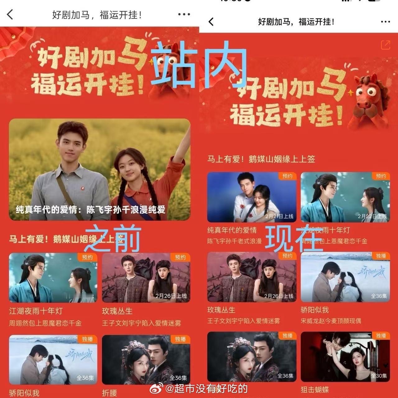 🐧春节追剧片单,陈飞宇、孙千《纯真年代的爱情》 本来作为央八黄金档,最初占头版、配超大海报,被列为头部重点剧集。但是5小时后紧急编辑:撤掉大图与头版位置,与《江湖夜雨十年灯》《玫瑰丛生》平级并列,不再是独一档头部推荐…