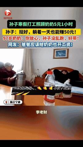 “笑死了!”浙江宁波,一大学生放假回家没事干,父亲就给他安排了一个工作,就是去照顾97岁的奶奶,而且是 有工资的,一天50块钱。而奶奶并不知道他是来赚钱的,还以为是儿子把孙子送来让自己照顾的,双方都觉得对方很好带。 孙子以为自己是躺赚金牌护工,奶奶安稳不吵不闹,扶个手、聊聊天,钱就到手了。 奶奶却以为孙子是来给自己解闷的,她负责催饭叮嘱,看着孩子乖乖听话,心里比啥都踏实。 两人各怀心思,却把日子过成了最舒服的模样。 这哪里是雇佣关系,分明是最聪明的亲情陪伴。 最好的孝顺从不是生硬说教,用孩子愿意接受的方式,让老人感受到被需要,才是家庭最该有的温度。