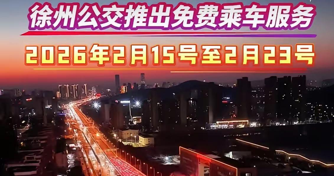 我大徐州就是大气!2026马年春节,徐州再一次实力上大分。徐州公交集团官宣:2月15日至2月23日,整整九天,全部线路免费乘车,主城区、乡镇、景区、交通枢纽全覆盖,旅游专线也一并免费,诚意拉满、格局拉满!这就是徐老大的底气与担当,用实实在在的福利,温暖每一位市民与远道而来的游客。 春节期间,八方游客奔赴徐州,感受汉风年味、品尝地道美食、畅游山水美景。为让外地朋友玩得舒心、行得顺畅,我们向全体徐州市民发出倡议:节日里尽量绿色出行,少开私家车,多坐免费公交,把道路畅通、停车便利留给游客,用包容与热情展现徐州人的好客与风度。 免费公交是城市的温度,礼让出行是市民的素养。让我们以开放包容的姿态,欢迎每一位来客;以文明有序的出行,守护节日的祥和。为大徐州点赞,为暖心举措喝彩!也邀请全国各地的朋友,放心来、尽情玩,徐州已备好美景、美食与免费公交,让你畅行无忧、欢度新春!
