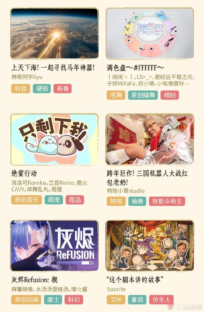 二次元春晚节目单今年段子依旧稳准狠!凡人二创曲《皆不过》走心安利,洛天依《辟浪》玩转科技国风。还有脑洞动画短片轮番轰炸,二次元春晚的快乐,只有我们懂!