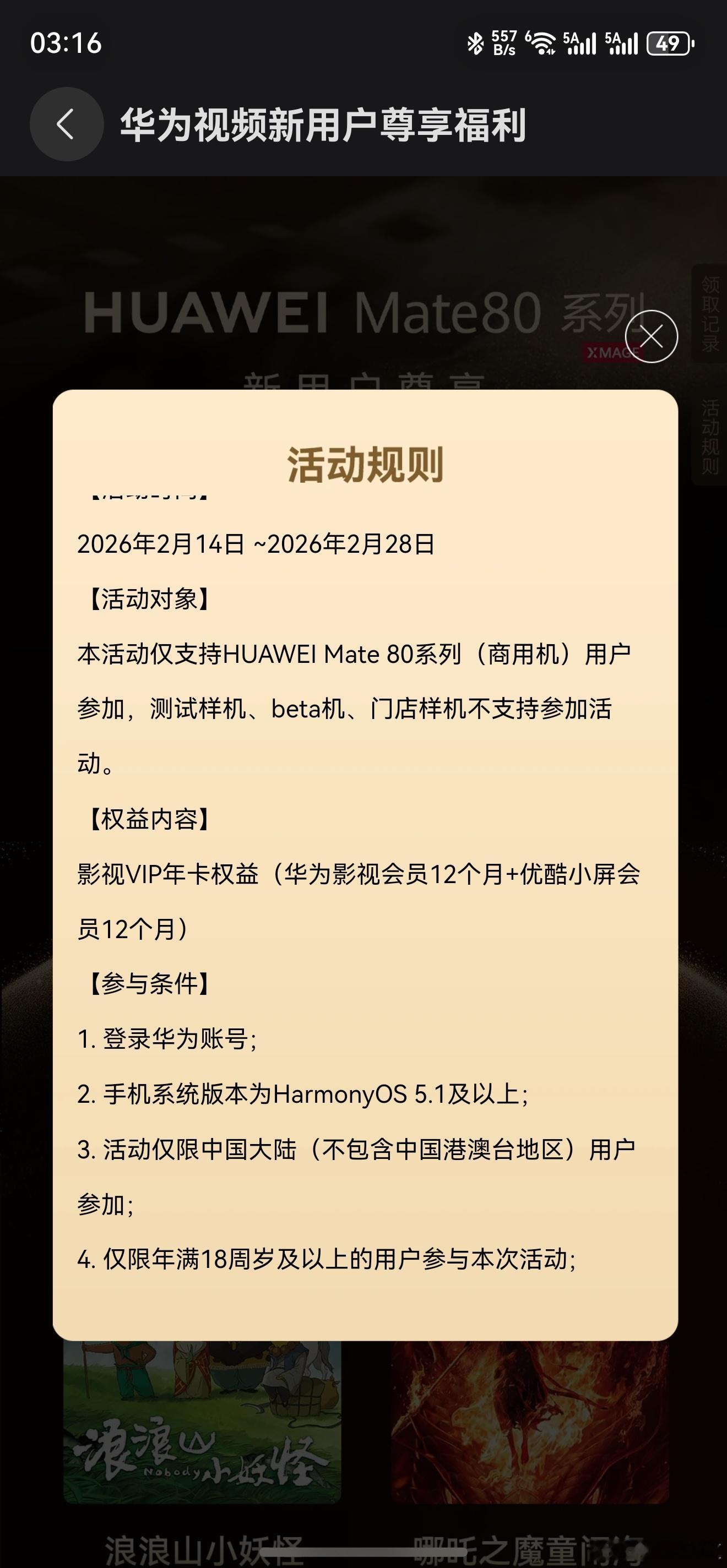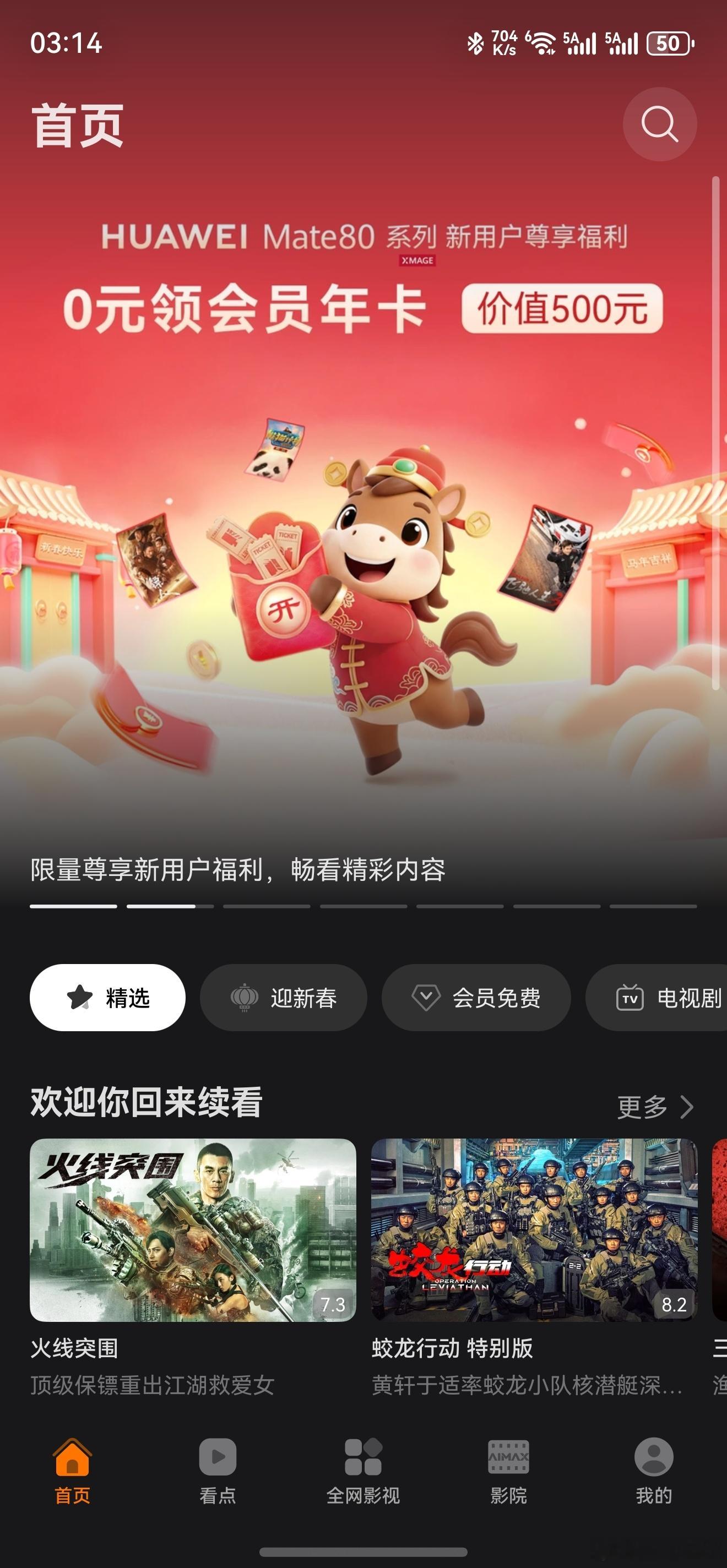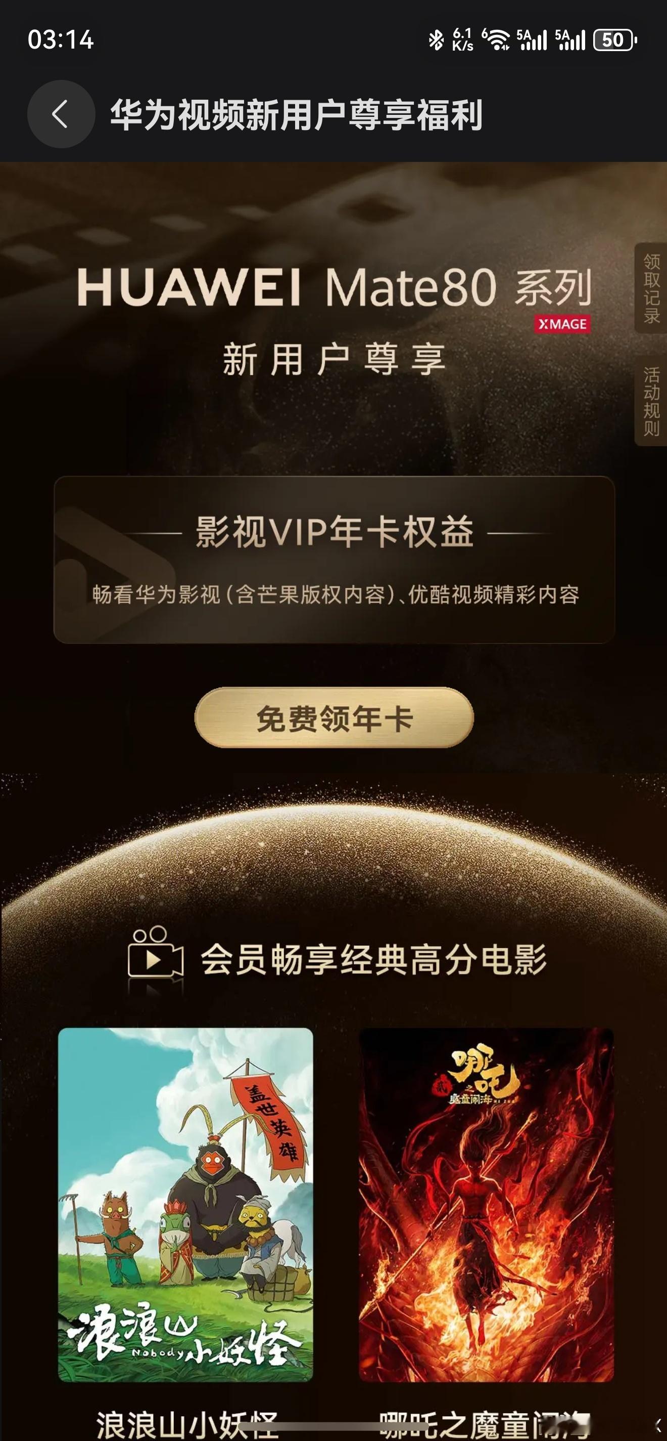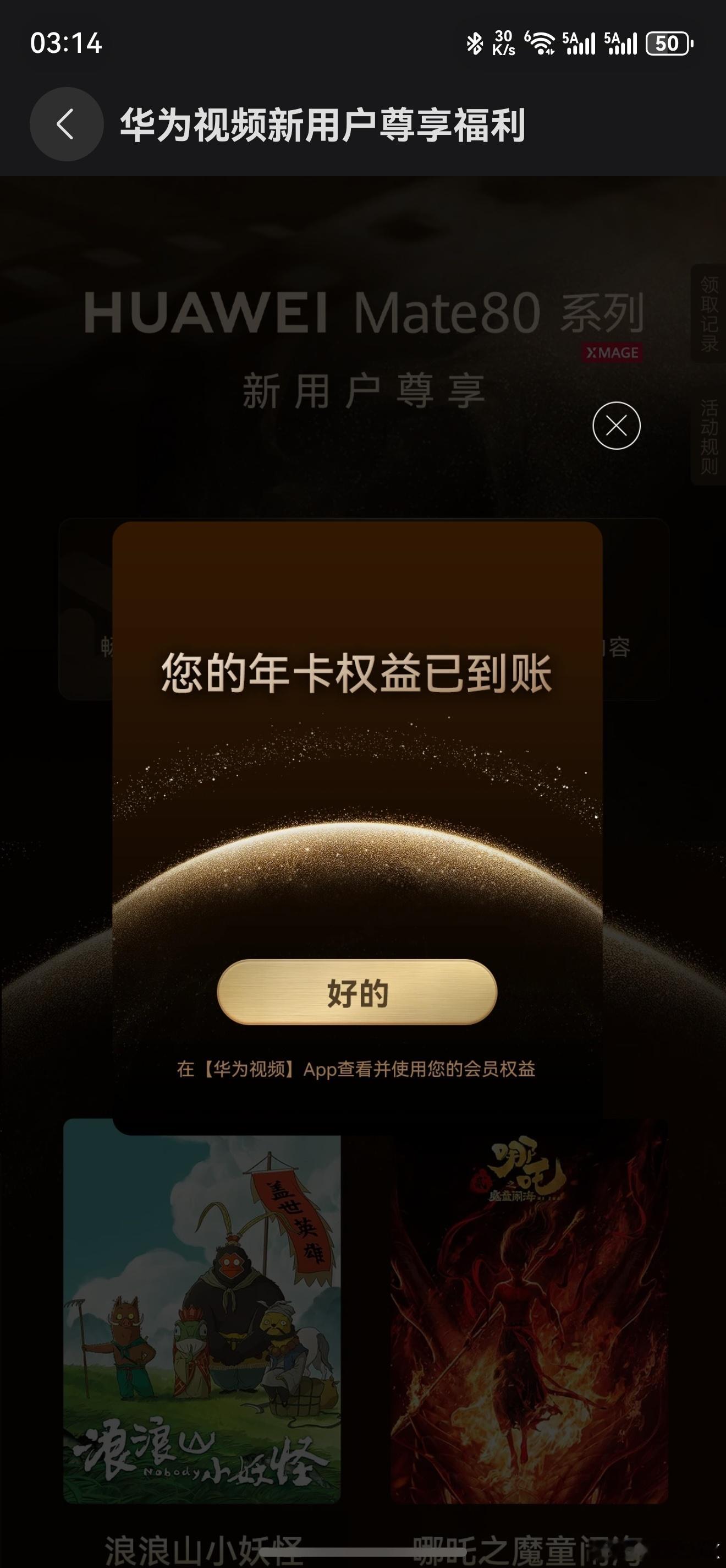 华为视频送会员年卡了!如果你是华为Mate80系列、华为MateX7折叠屏的用户,赶紧打开华为视频,领取视频会员年卡!赶紧的