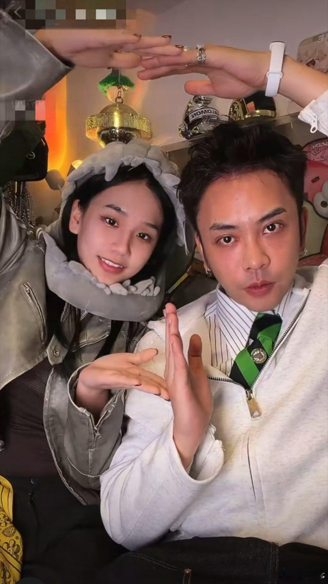 张天爱跟素人合影,胯真的好宽,大宅院似的