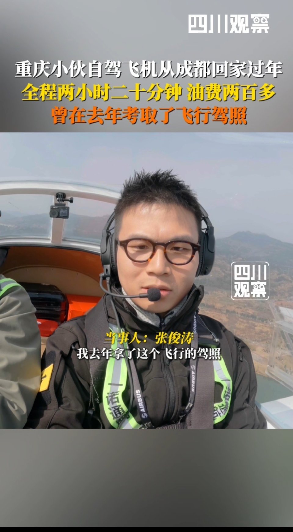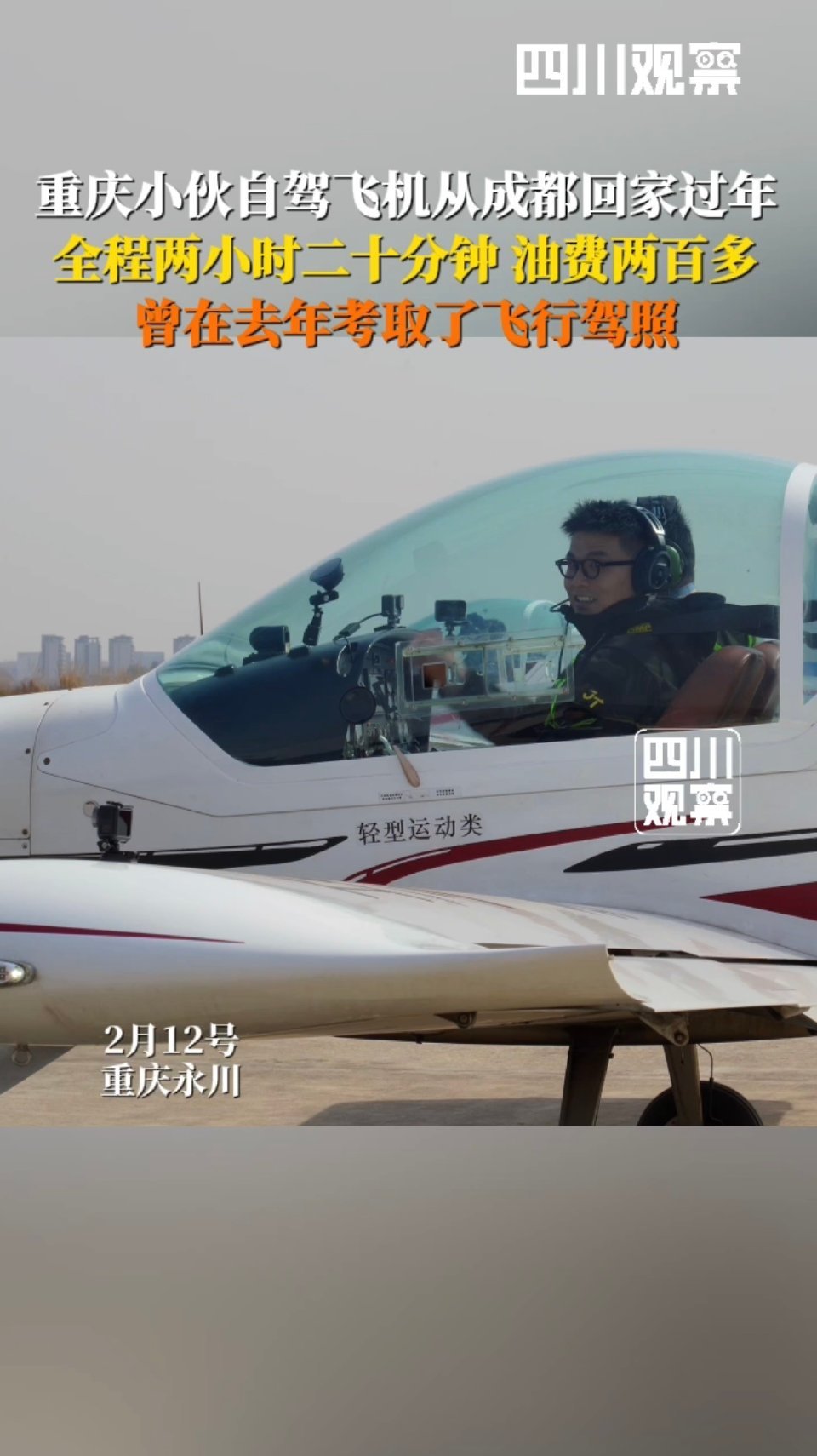 小伙从成都开飞机回重庆过年看完视频发现开飞机回家过年性价比也挺高啊哈哈哈哈!还有自己开着飞机拍照这个视角太绝了,好想体验!!