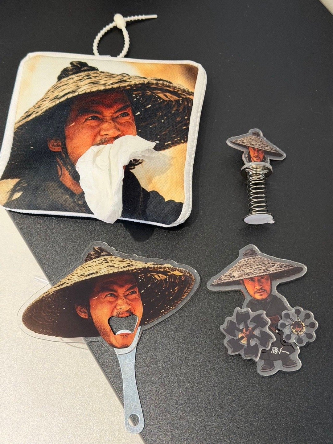 吴京知道镖人的周边长这样吗 吴京知道镖人的周边长这样吗?从抽纸巾到扇子到旋转兵器小人,官方把京哥整出了花活!抽纸是刀马,扇子是刀马,连旋转小人都是刀马——这是要让刀马深入你的生活无处不在啊!抽象程度我给到夯!