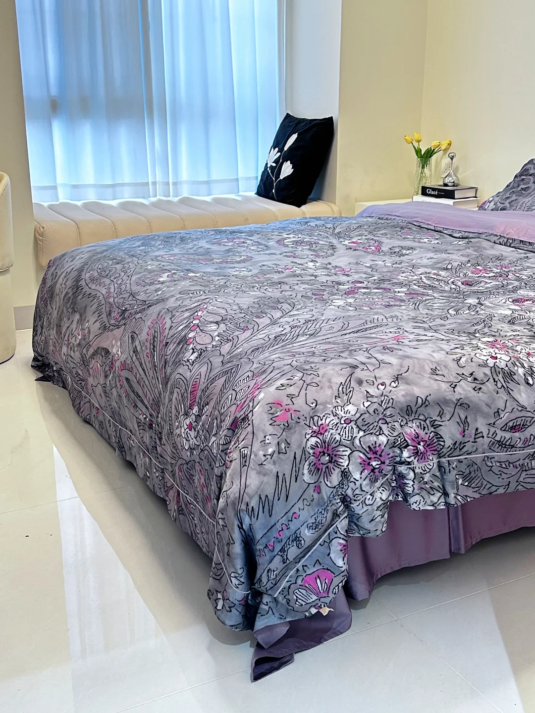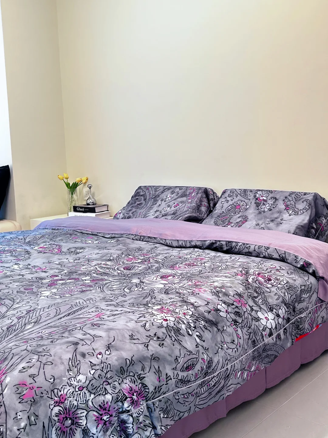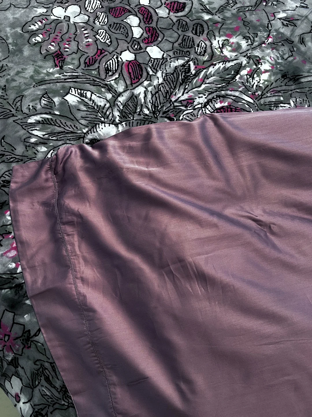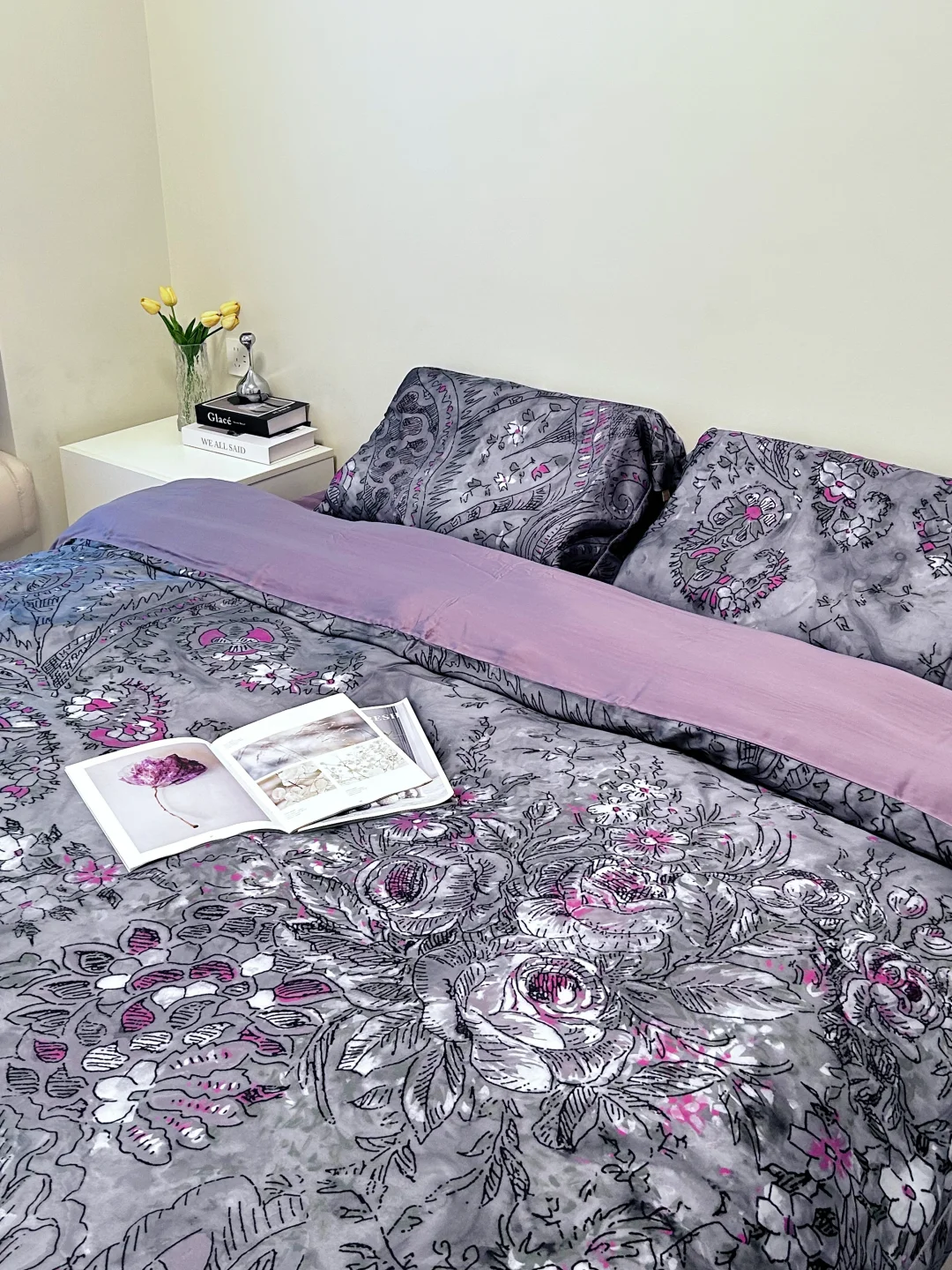 🌧过年的天气开始潮湿闷热,换上这套舒服的天丝四件套,灰调底色➕粉紫花卉印花🍁,复古又温柔,摸上去巨柔滑巨亲肤,这种天气睡它真的绝!凉而不冰的肤感,透气🍃不闷汗,裸睡党闭眼冲呀,简直舒服到不想起床啦!
