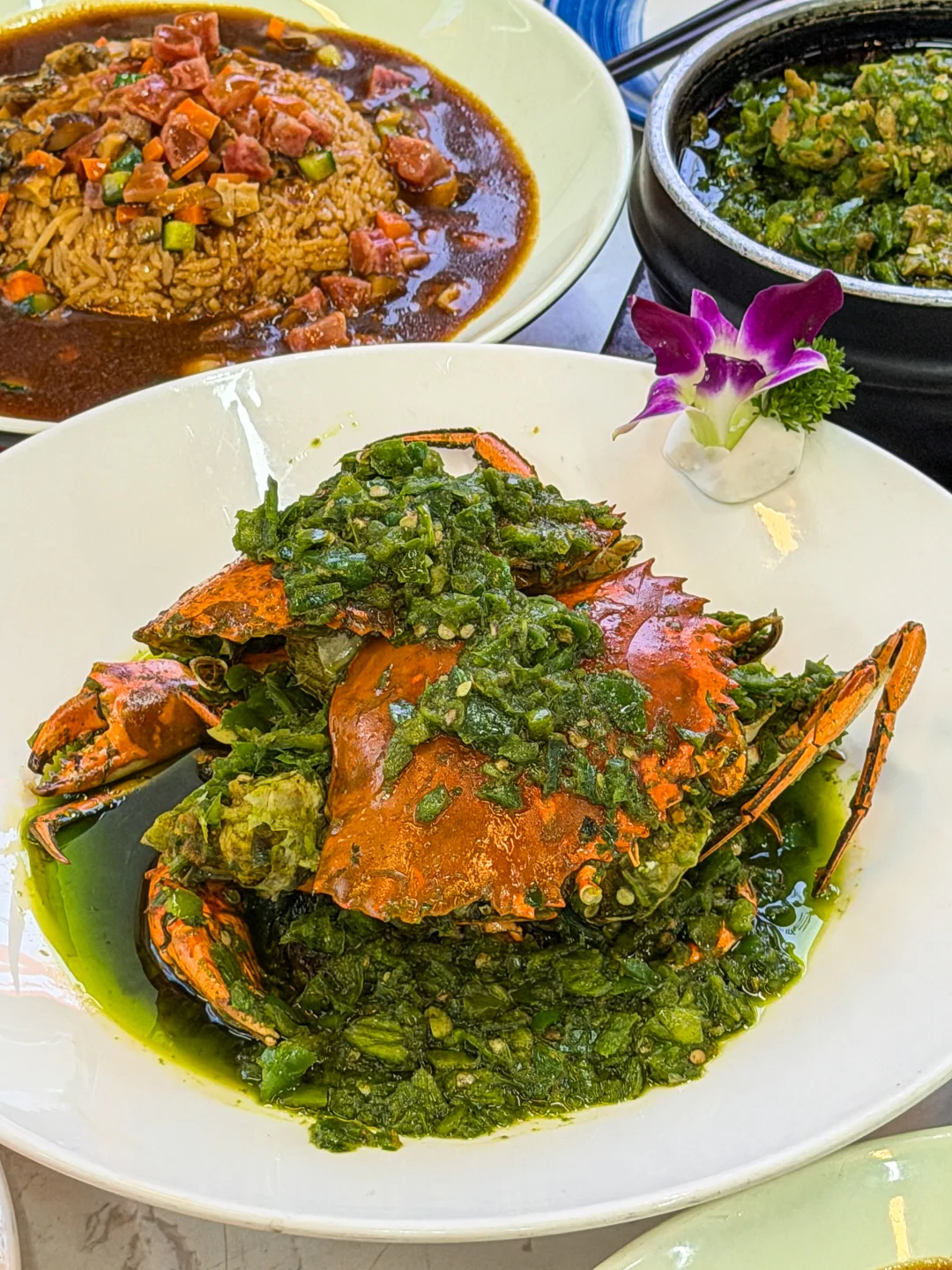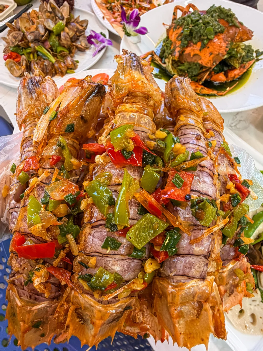 感谢网友!!确实是三亚前三好吃的海鲜… 为了这口椒盐皮皮虾我能再来他家10000次 虾肉饱满紧实 鲜甜肥美 微微的辣很开胃 而且不用自己剥壳也太太太爽了吧🥹 还有每次必点的🦀青椒蟹 没在别家吃过的味道 鲜甜入味好好吃 他家海鲜都是现点现捞现做的 可以自己去海鲜池选 猛火现炒真的香👍 记得点一份鲍鱼捞饭 满满都是料 一口下去jujuju满足🤤