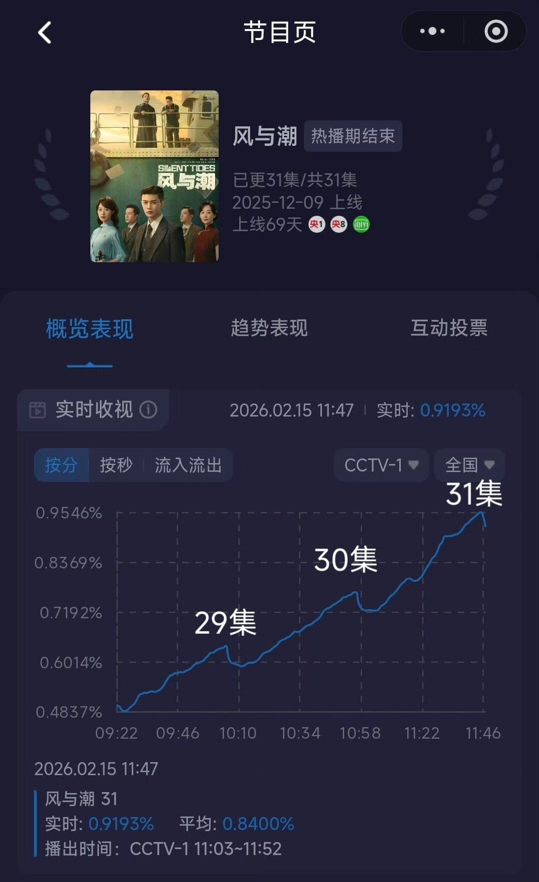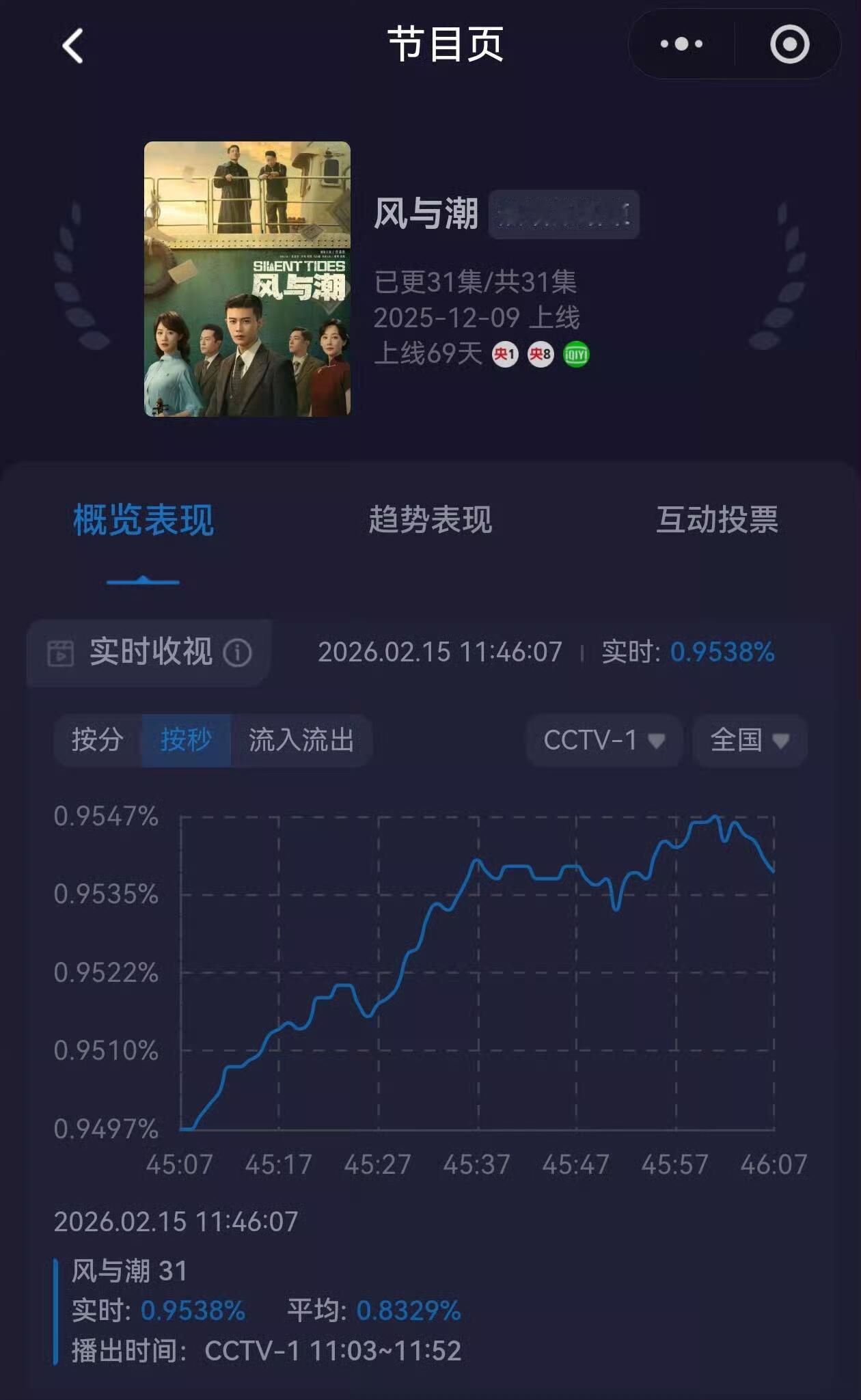 任嘉伦风与潮央1上午档收视率这曲线就是这么曼妙❗️