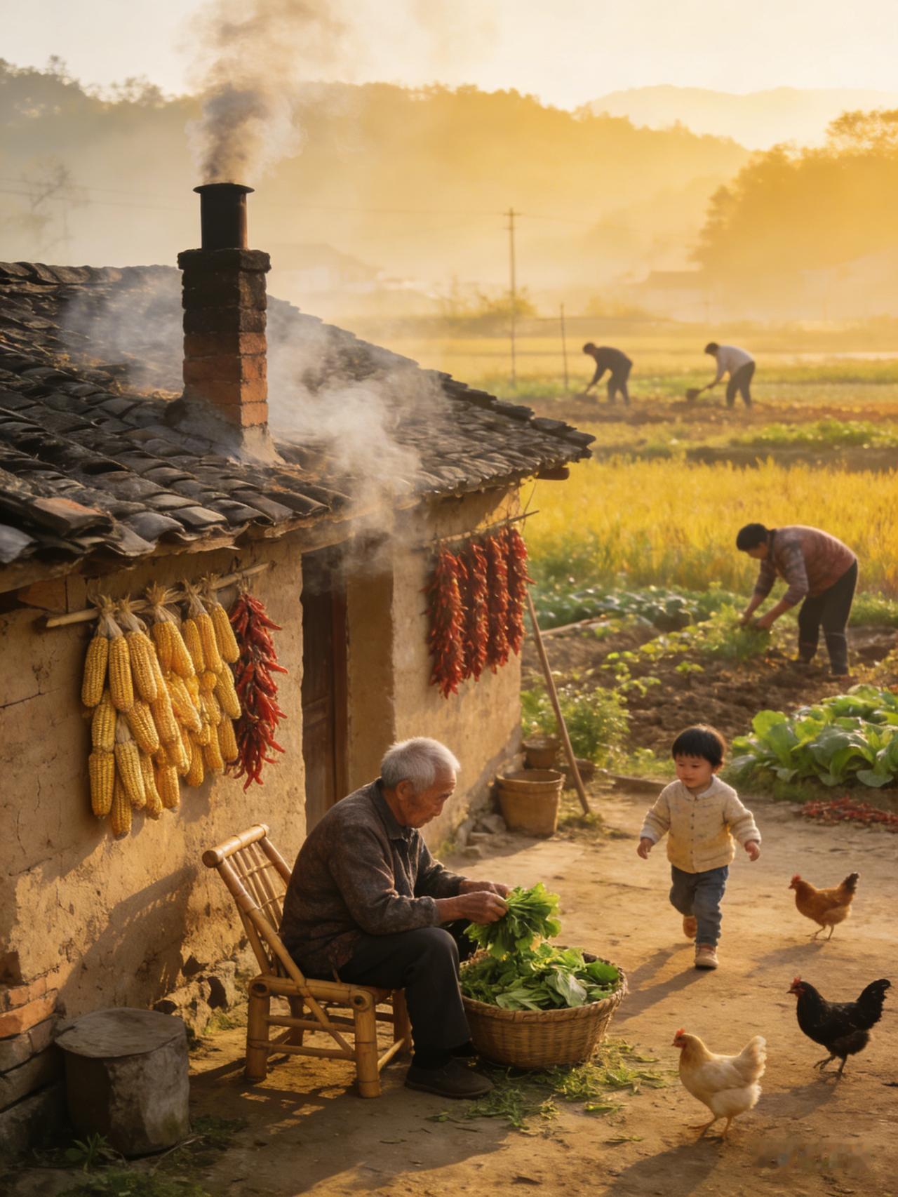 乡下的日子,没有电梯,没有高楼, 一开门,就是风、阳光和泥土的味道。 不用看天气预报, 脚一踩地,就知道冷暖; 眼一抬,就看见四季。 清晨有鸡鸣,傍晚有炊烟, 锅里煮着家常饭,院里晒着太阳。 不用赶时间,不用挤人群, 心一静,日子就慢了。 出门是邻里,抬头是熟人, 一句家常话,一碗热茶水, 这就是最踏实、最暖心的烟火气。