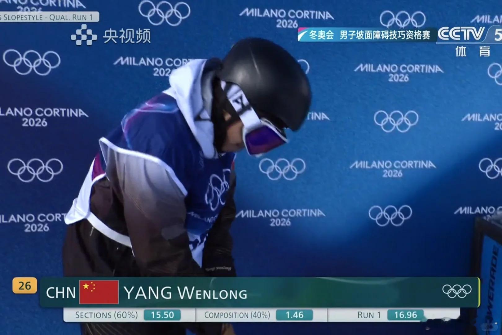 冬奥会单板滑雪男子坡面障碍技巧预赛,中国选手苏翊鸣第一滑70.83分最终排名第6,葛春宇第一滑21.70排名第25,杨文龙第一滑16.96分排名第27。