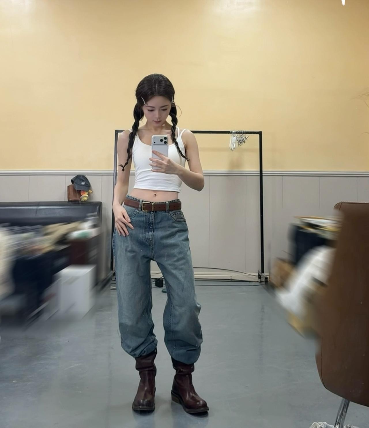 赵今麦对着镜头摆弄自己的双马尾。 双麻花辫晃来晃去,甜妹感直接拉满,白色吊带配复古牛仔裤,又甜又酷。 该说不说赵今麦的脸真的好小,皮肤白到发光。 腰细得不像话,马甲线若隐若现,搭配棕色靴子,又飒又娇。 内娱少有的又有辨识度又有灵气的脸,每次出现都能美出新高度,赵今麦真的是老天爷追着喂饭了。