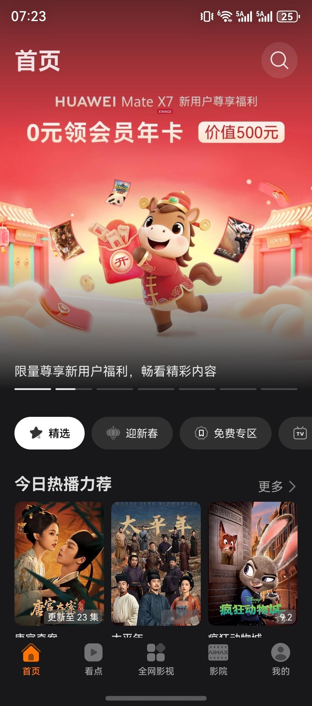 刚用华为Mate X7在华为视频领了一年视频会员!哇,开心 西安