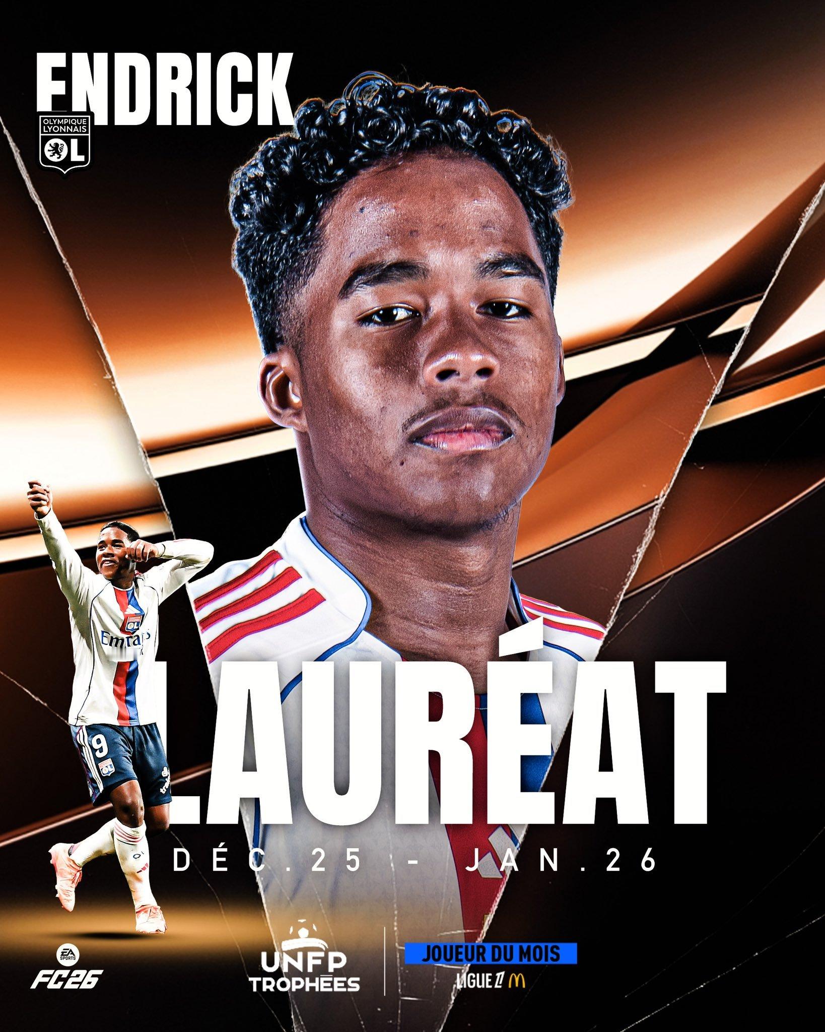 恩德里克当选法甲联赛月度最佳球员,这是他在法甲的第一个月! 🔥