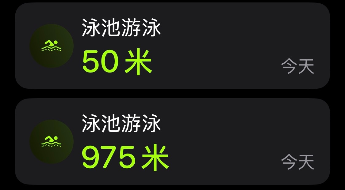 互相探讨了一下泳姿技巧导致苹果表的距离记录都紊乱了第一段975实际是1000,少记了25