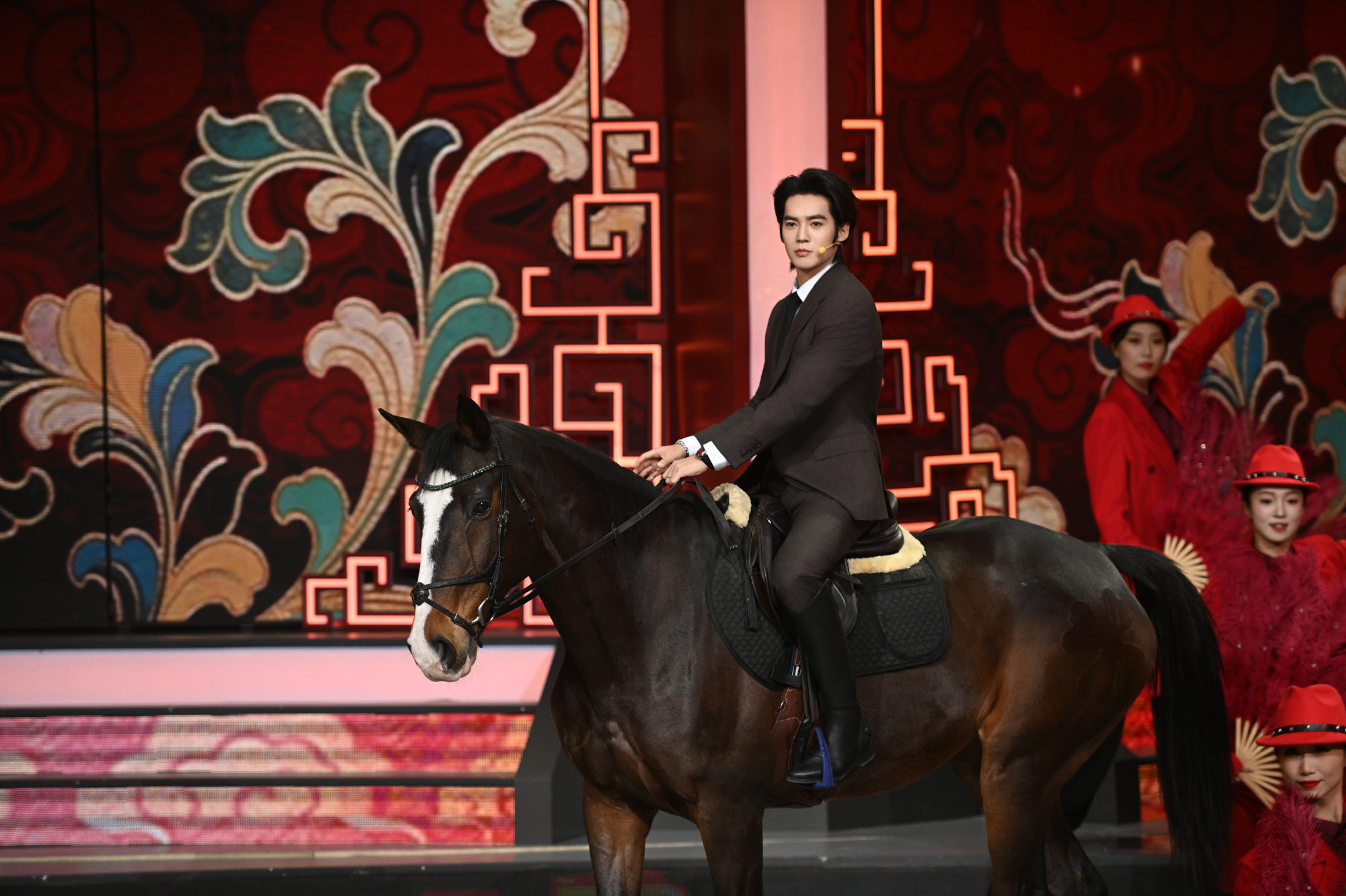 辽宁春晚于适骑马出场于适一袭西装策马踏歌出场,真白马王子没错了,期待今晚的精彩舞