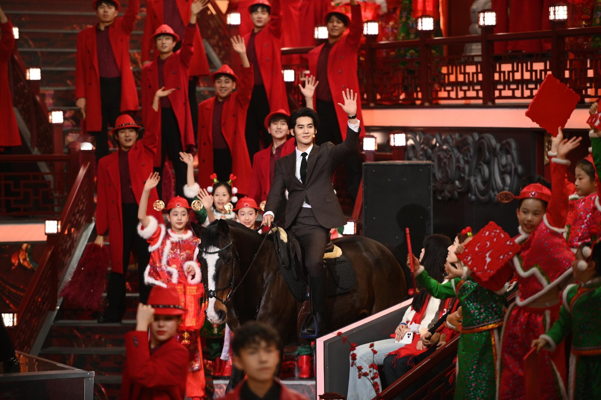 辽宁春晚于适骑马出场于适一袭西装策马踏歌出场,真白马王子没错了,期待今晚的精彩舞台!辽宁春晚