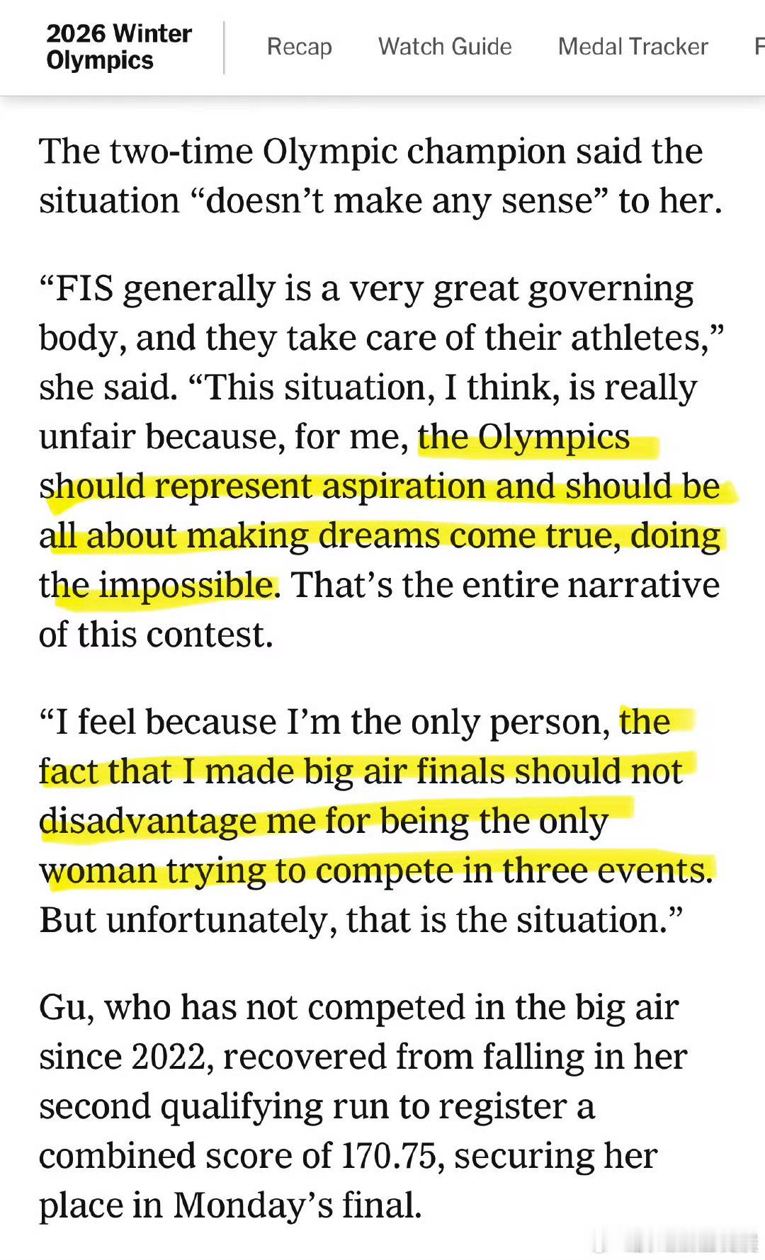 谷爱凌回应雪杖断了雪杖断了、摔倒了、疼呗,但她照样晋级!谷爱凌大跳台预赛总分170.75分,以第二名强势晋级决赛!直言真实感受:疼、难受、不舒服,却依旧选择上场、敢拼敢比。不找借口、不怕输,这就是谷爱凌最动人的底气。v观冬奥会全民聊冬奥体育大拜年
