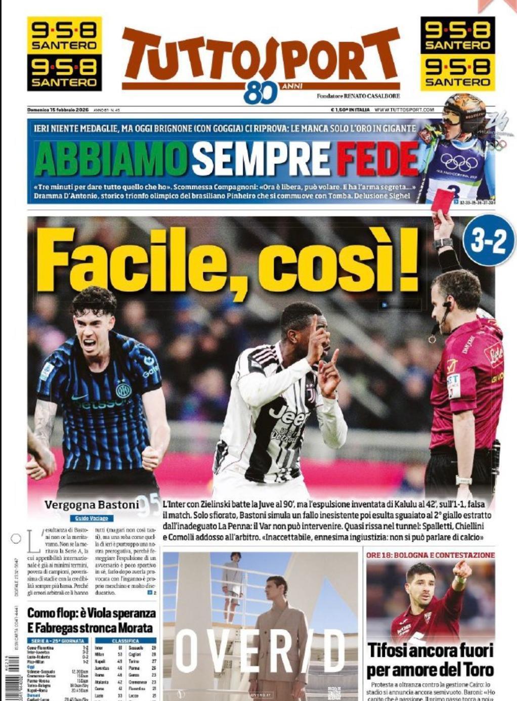 晚上看了看意媒,真的是疯狂啊。 我只能惊叹,好家伙,真的好家伙。 几乎所有媒体——不管是体育的,还是综合类大报,都在疯狂的声讨国米。然后上纲上线,把问题拔高到整个意大利足球的高度,似乎意甲留不住明星,意大利无缘世界杯,全都赖国米。 甚至有那种在体坛、官场上颇有能量的大人物,在呼吁将巴斯托尼开除出国家队,永久! 这令我感到不解。 意甲如今是什么样的联赛?哪场强强对话没有裁判争议?国米本赛季首循环踢尤文、踢那不勒斯,当时的争议,难道比这场比赛小么? 在足球世界里,豪门球队有时吃亏,有时占便宜,不是很正常的事吗! 可为什么如今只是国米占了便宜,所有的意媒都像疯了一样的大肆炒作? 也许,这与尤文资方的影响力有关。毕竟在意大利,每6个成年人中的1个,就在Exor集团(阿涅利家族及其周边产业)讨生活。这是真正的大佬,资本国家里,即便AC米兰老板是当年的总理,遇到尤文也只能被欺负还陪着笑脸。 也许,这就是国米险恶、糟糕的舆论环境的最直接体现吧。 证据就是,当年布冯把过线51厘米的皮球捞出来时,虽然全世界球迷都感到不忿,但也没有几十家意媒整齐划一的进行声讨。总还有那么几家报纸,总还有那么几个国米球迷圈的所谓“独立思考的懂球大佬”,在那硬着头皮给布冯洗地,顺便要求与此事八杆子不着边的国米进行反思。 可如今,齐沃仅仅是在赛后发布会上,捍卫自己麾下的巴斯托尼——这本来就是一个教练应该做的事,毕竟不是每个人都能活成甩锅狂魔斯帕莱蒂那种样子——就有那么多记者、大佬、报纸,对国米教练进行各种声讨,而且声讨基本都不在足球层面,而上升到了人格层面。 却几乎没有什么媒体,试着为没有犯什么道德错误的齐沃说两句公道话。 国米媒体环境之险恶,可见一斑。 事情就是如此,所以,希望各位国米球迷,没必要去和人对线。因为无论怎样,也不可能改变他们心中对国米汹涌的恶意。大过年的,没必要掺和这些不痛快的事哇~~