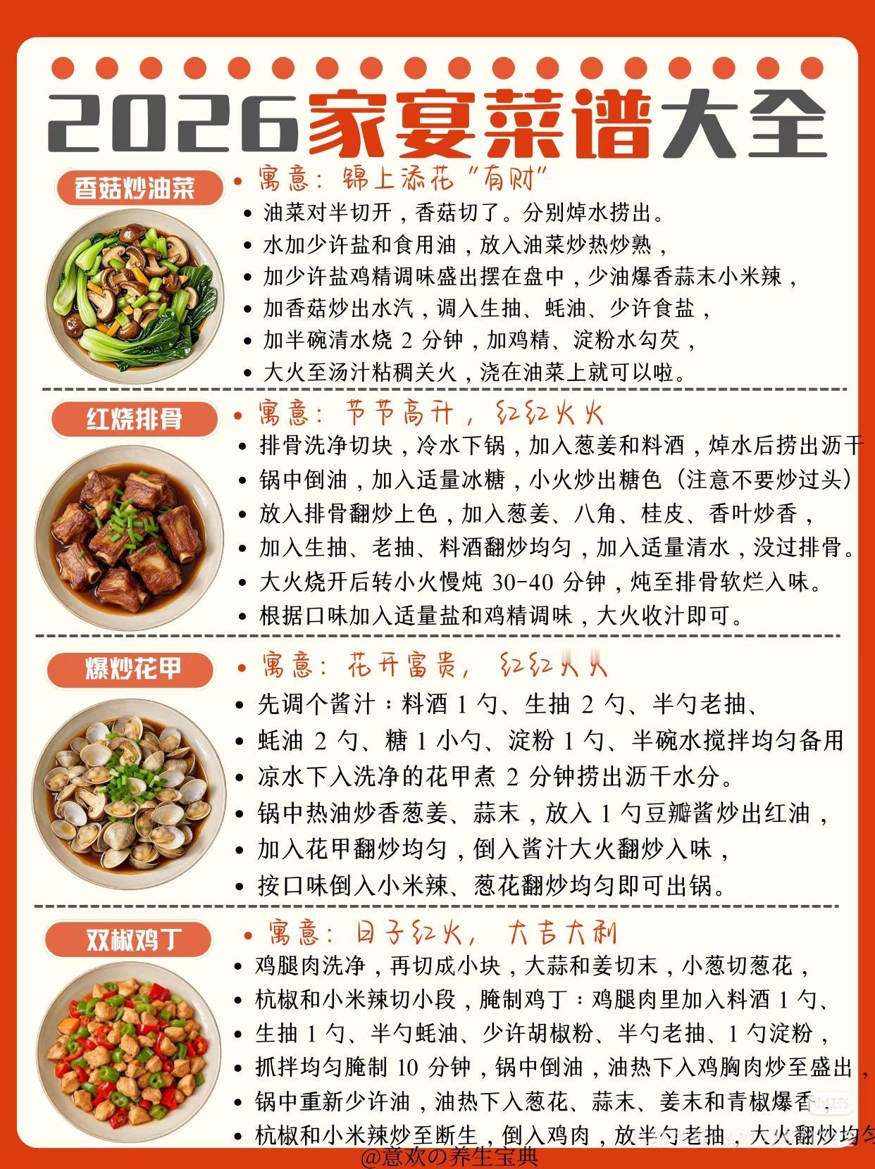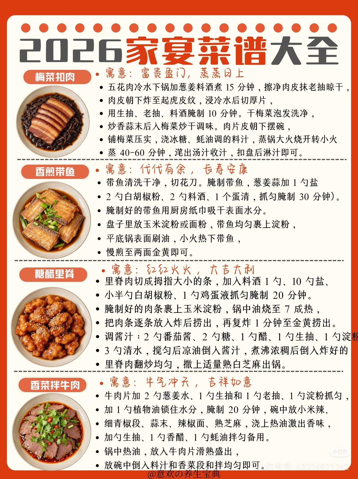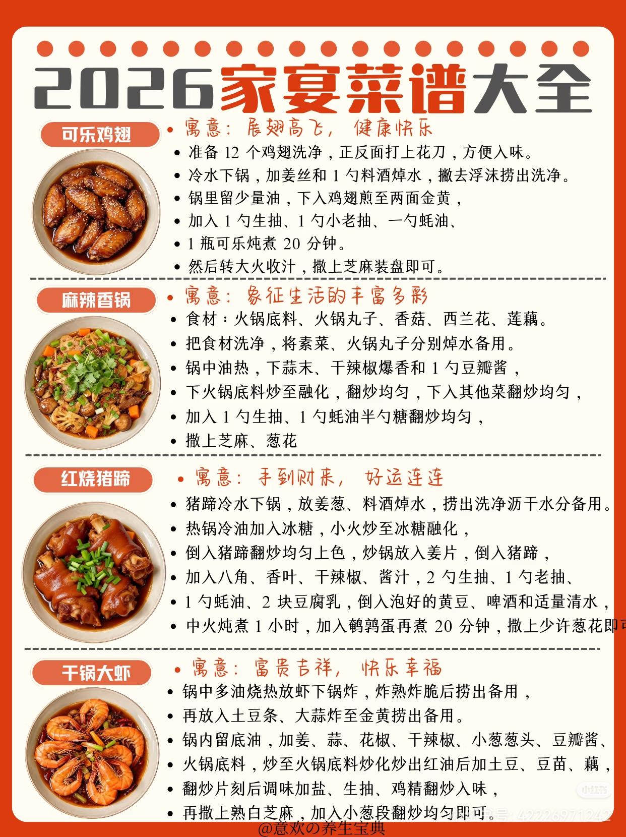 2026年夜饭菜谱大全附详细做法春节年夜饭菜单家常菜年夜饭过年菜单