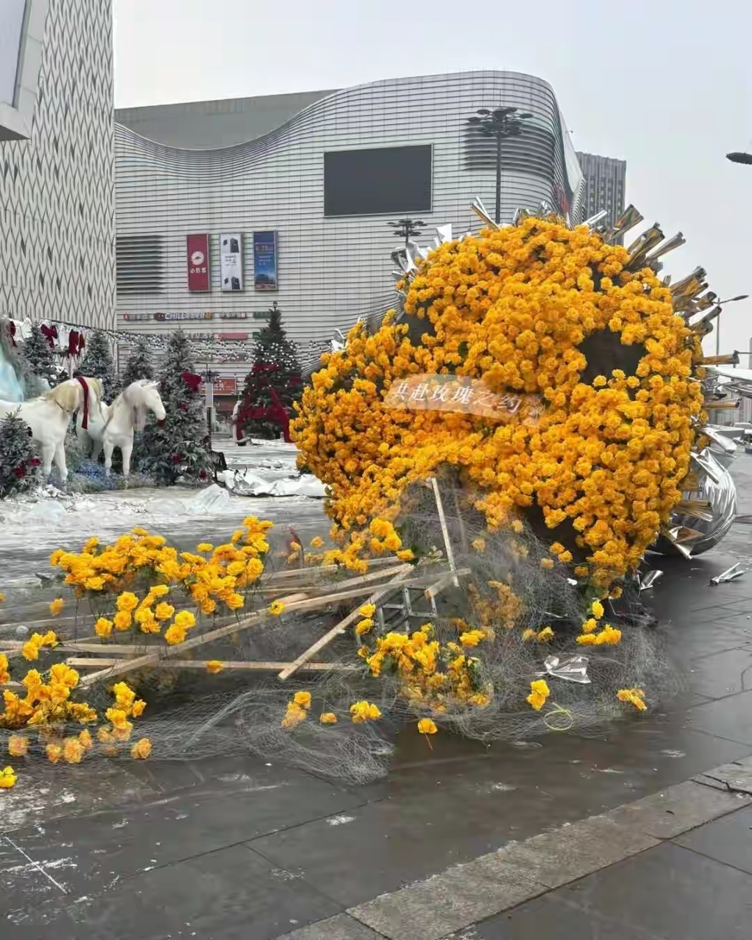 演员刘亦菲曾打卡的哈尔滨“冰封黄玫瑰”被拆,商场:天暖化冻,出于安全考虑拆除