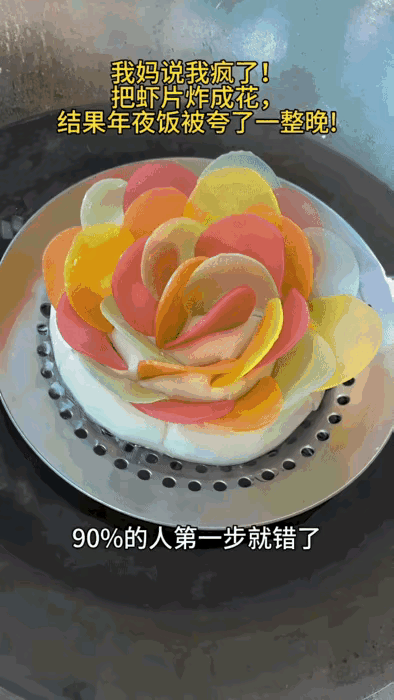 我妈还说我瞎折腾,把虾片炸成花,结果年夜饭一上桌,大家都夸好看又好吃!