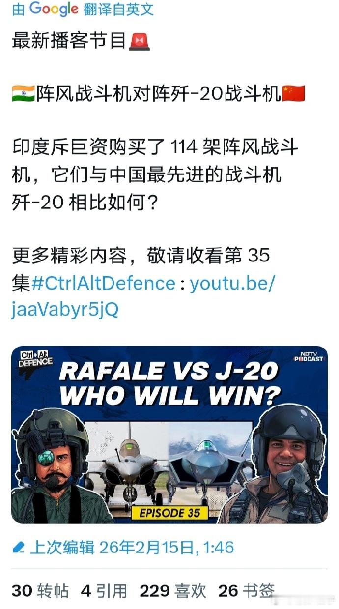 印度人制作节目,探讨歼20与阵风的空中对决。观众们将见证这场技术与速度的较量,谁能在蓝天上留下更深刻的印记?