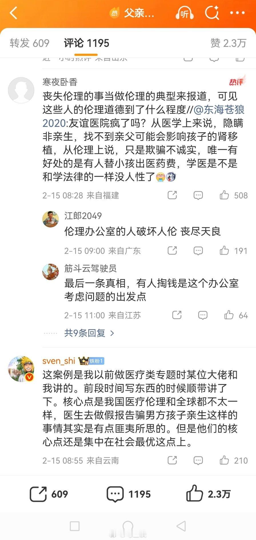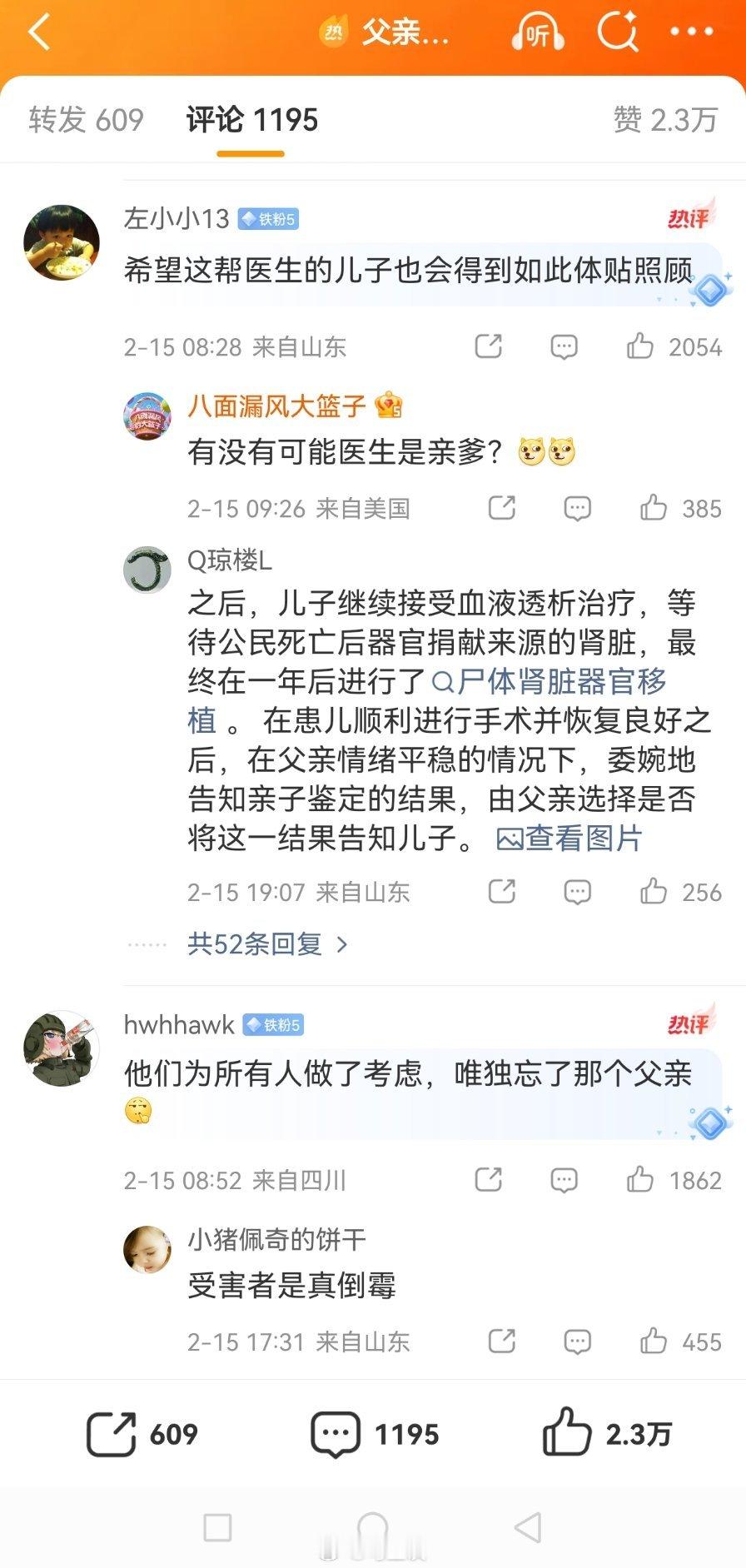 父亲捐肾发现儿子非亲生 热搜下气人的评论(图一)…很多人真喜欢站在道德高地扫射其他人,也不管自己说出来的缺不缺德…还好,大部分的网友都是很明事理的,这也是为什么公知和女拳越来越带不了节奏的原因。图二是前情提要。