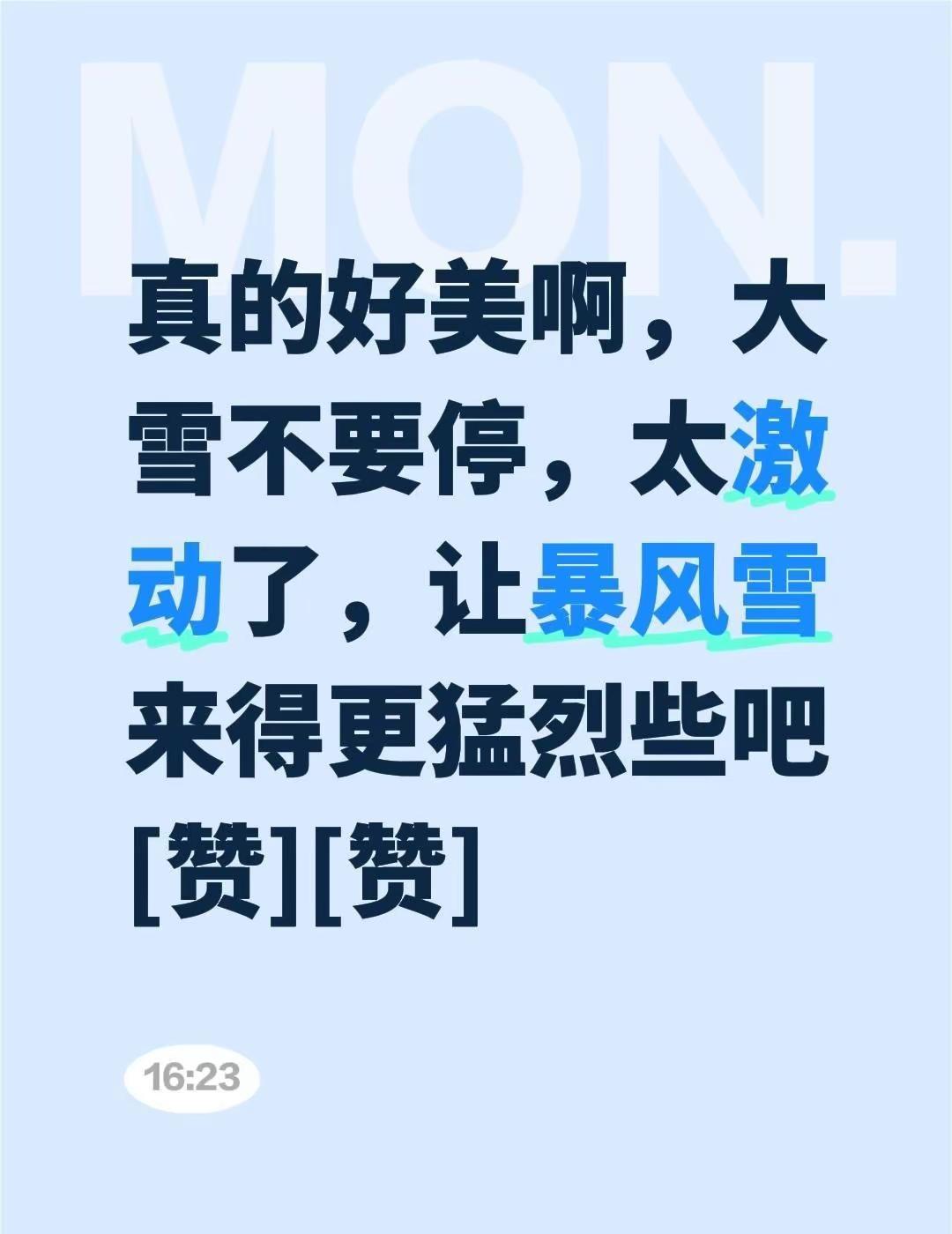 让暴风雪来得更猛烈些吧!!我评论了@凯润Karen 的作品:真的好美啊,大雪不要停,太激动了,让暴风雪来得更猛烈些吧[赞][赞]雪景好美