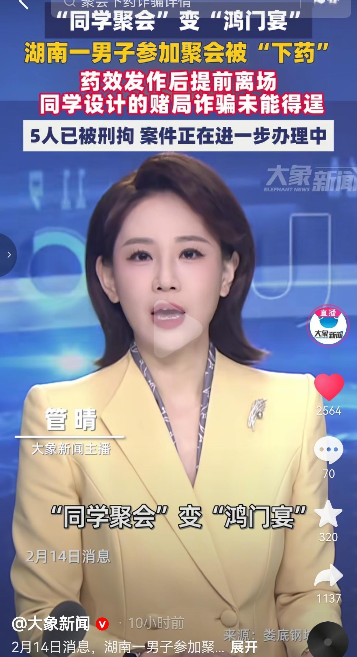 同学聚会变“鸿门宴”!湖南男子被下冰毒,幸好提前离场,才没被老同学“杀猪”坑惨。 湖南娄底的张某,突然接到老同学林某的电话,语气热络得不像话:“老张啊,好久不见,出来聚聚呗,就咱们几个老伙计,聊聊当年的事儿。” 张某心里一暖,想着都是当年一起在教室里打闹、分享干脆面的老熟人,没多想就答应了。 可是,令他他万万没想到的是,这根本不是什么叙旧局,而是一场精心策划的“鸿门宴”。 2025年11月的那天晚上,酒桌上的气氛热闹得有些刻意。黄某、林某等几个“老同学”轮番劝酒,你一杯我一盏,嘴里说着“不喝就是不给面子”。 张某架不住这份“热情”,几杯酒下肚,很快就觉得不对劲了:头晕、心慌,整个人轻飘飘的,意识开始模糊,连眼前人的脸都看不清楚。 他心里咯噔一下,瞬间清醒了大半——这酒里绝对有问题! 还好他反应快,强撑着最后一丝理智,借口身体不舒服要去医院,不顾众人的挽留,跌跌撞撞地冲出了饭店。事后经鉴定,他的血液里竟然检出了冰毒成分! 原来,这几个人早就预谋好了“组局杀猪”。他们以同学聚会为名将张某骗出来,趁他不备在酒水里下了冰毒,就等他神志不清的时候,把他拉到赌局里出千诈骗,准备把他的钱骗得一干二净。 幸好张某警觉,及时脱身,才没让他们的阴谋得逞。而这5个曾经的“老同学”也没能逍遥多久,2月12日,警方在高铁站将该团伙成员一网打尽。 目前,这5名犯罪嫌疑人均已被依法刑事拘留,案件正在进一步办理中,等待他们的,将是法律最严厉的制裁。 看完这个事,我心里五味杂陈,堵得慌。 都说“同学情,最纯真”,可现在怎么就变味了? 那些曾经一起抄作业、躲在厕所抽烟的伙伴,怎么就成了处心积虑算计你的“猎人”? 这让我想起了一句话:“世界上最可怕的不是鬼神,而是人心。” 尤其是人到中年,很多同学聚会早就变了质。有人炫富晒表,有人攀比孩子成绩,有人挖空心思搞人脉资源,甚至还有人像这次一样,把昔日同窗当成了待宰的“肥猪”。 你以为的久别重逢,可能是别人精心设计的陷阱;你以为的无条件信任,可能是别人用来伤害你的最锋利的武器。 此事引发网友的热议,有的网友说:“太吓人了!以后不熟的同学聚会坚决不去,人心隔肚皮啊!” 也有的网友说:“为了钱连老同学都害,良心被狗吃了吗?” 还有的网友说:“多少年的情分,抵不过一点利益,太现实了!” 这件事给我们所有人都敲响了警钟,尤其是在这个人心复杂的社会里: 防人之心不可无:哪怕是再熟悉的人,也不能掉以轻心。涉及到金钱、利益,或者气氛诡异的场合,一定要多留个心眼,别让“情分”蒙蔽了双眼。 酒局有风险,赴宴需谨慎:不要轻易喝别人递过来的酒,尤其是离开过视线的杯子。感觉身体不适,立刻找借口离开,不要硬撑,因为你要知道,你的安全比面子重要一万倍。 这个世界上,没有无缘无故的热情,也没有免费的午餐。当有人突然对你过分热情,或者用“老同学”“老朋友”的名义套近乎时,你一定要在心里打个大大的问号:他到底想从我这里得到什么?