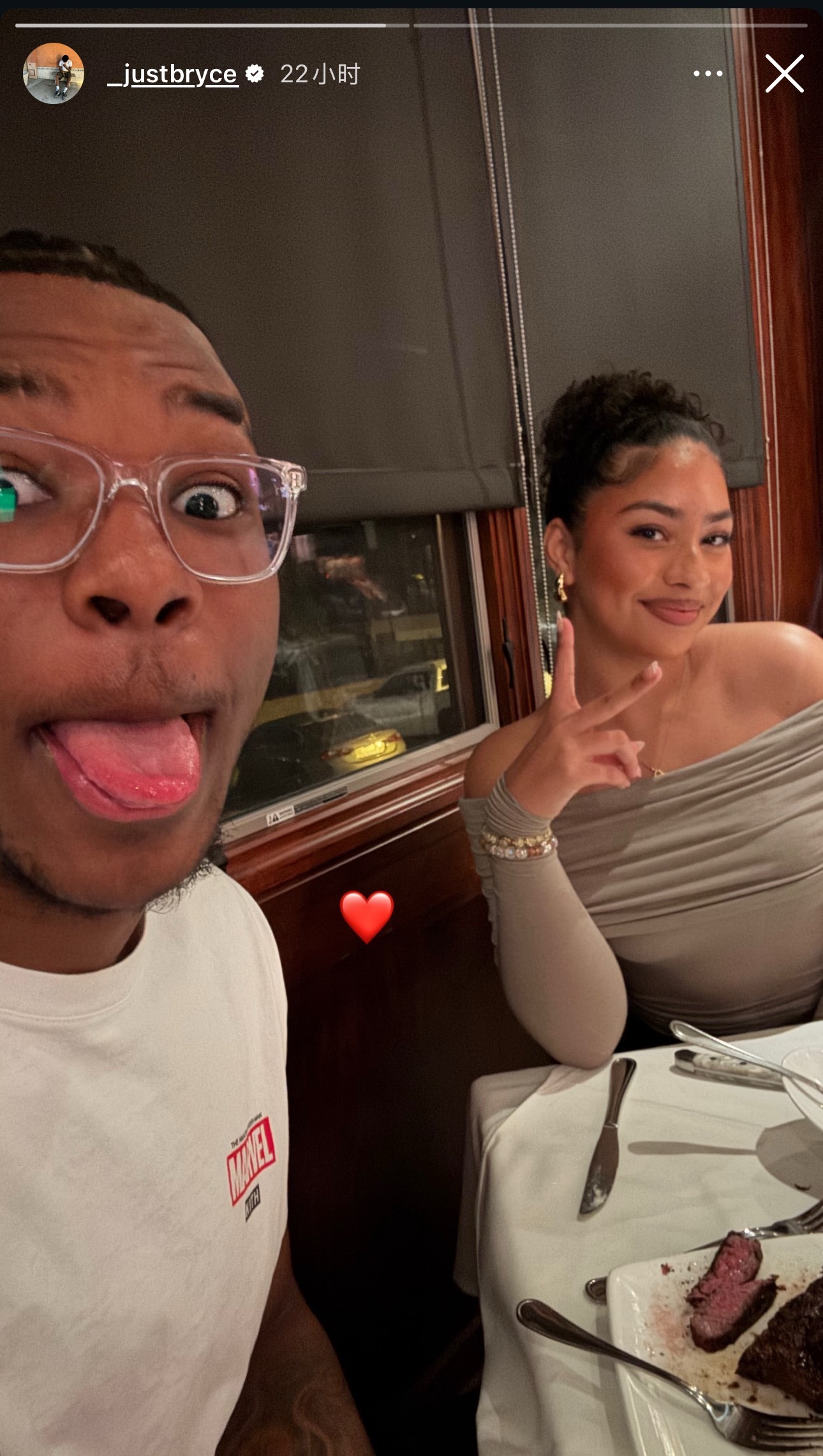 孩子们长大了,都过情人节了既大哥布朗尼后,布莱斯也晒出与女友的约会照片