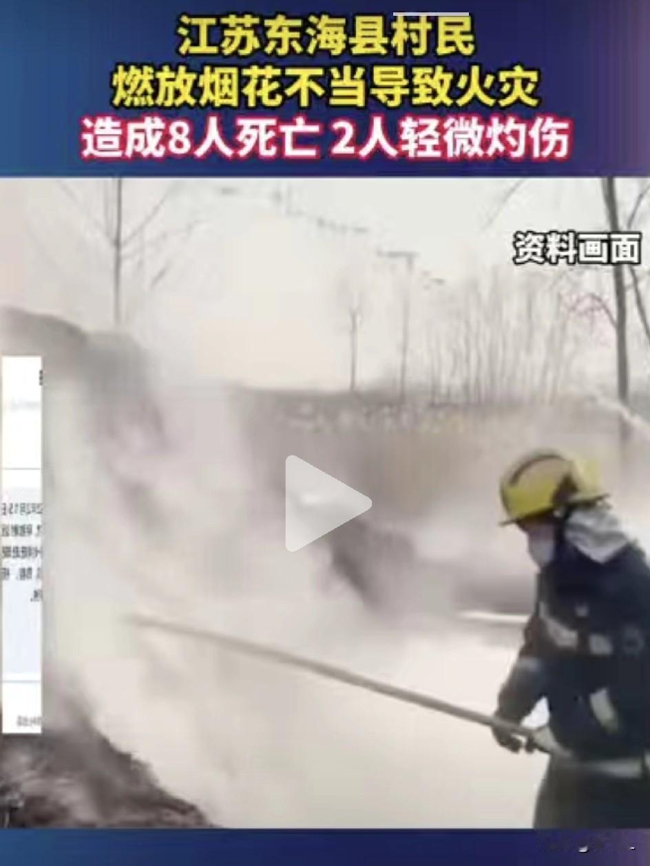 春节前夕,连云港东海县突发悲剧!放烟花引燃周围烟花爆竹店,已致8人不幸遇难! 2月15日下午两点半,连云港东海县石榴街道东安村,因为有村民放烟花时,没注意周边环境,结果烟花爆出来的火星子溅到旁边一个卖烟花爆竹的店里,一下子就点着了! 火势瞬间起来,现场情况非常危急。消防、急救很快就冲过去了救火。 到下午4点左右,明火总算扑灭了。但让人痛心的是,这场事故已经导致8个人丢了性命,还有2个人受了点轻伤。 目前相关的责任人已经被控制起来了,具体原因和责任还在进一步调查和研判中。 谁能想到,年关将近,喜庆的烟花竟成了夺命的导火索?那飞溅的火星,带走的何止是是8条鲜活的生命,更是好几个家庭的支柱和希望。 现在最重要的就是把原因查清楚,把后续的事处理好。 愿逝者安息,生者警醒。今年放炮的时候,多看一眼周边环境吧,咱们的平安,才是家里老人最大的盼头。 放烟花,一定一定要离卖炮的地方远远的啊!一定!一定!!一定!!! 素材来源:观察者网,侵联删!