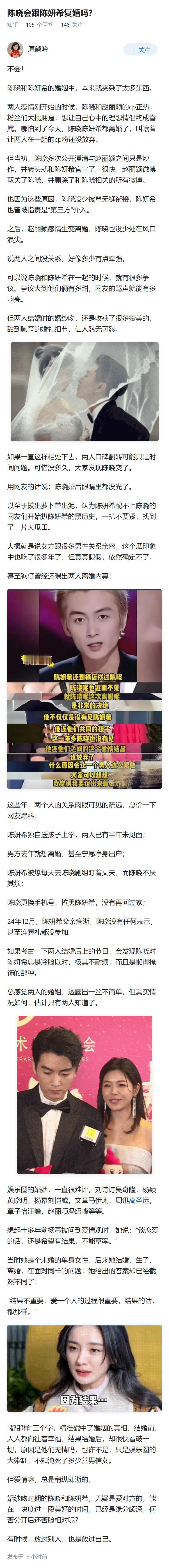 我有种预感,陈妍希与陈晓分开,很有可能是陈晓一辈子的痛,别的明星离个婚恨不得把对