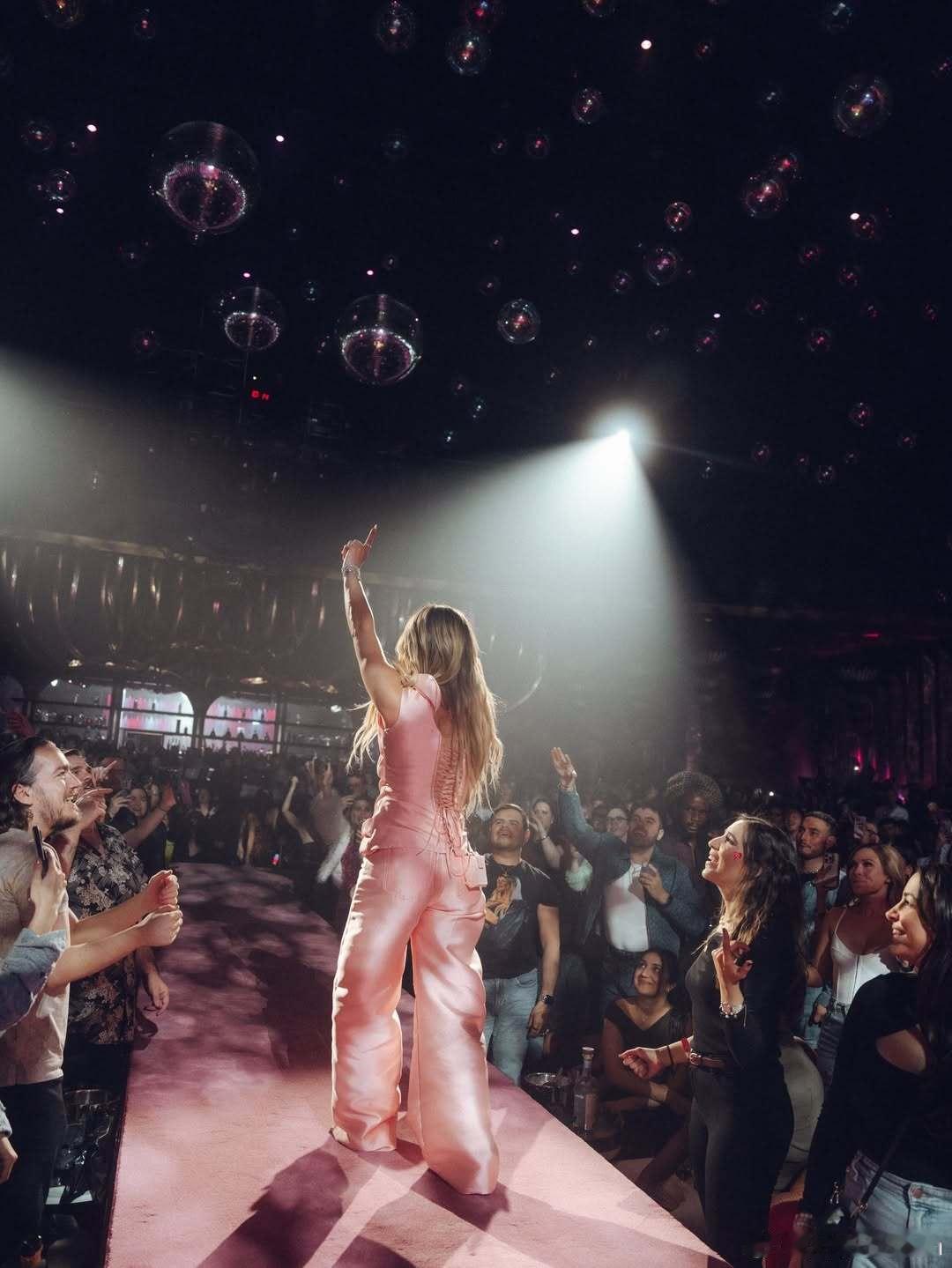Hilary duff希拉里达芙在拉斯维斯家的第二场个人演唱会演出,正逢情人节,达芙在后台也和老公Matthew koma秀了起来