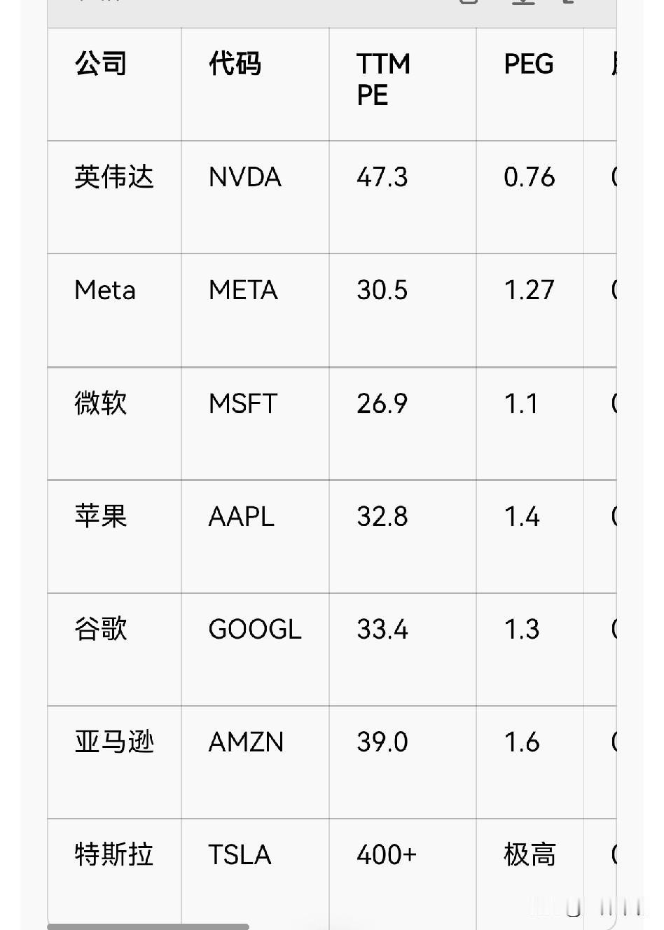 天天说美股泡沫, 昨天查了一下美股“七朵金花”的市盈率, 除了特斯拉400多倍的pe,但是马斯克还是三个好故事(spacex上市,人形机器人量产,脑机接口量产) 其他的英伟达最高才47.3倍, 微软26.9倍,Meta30.5倍,苹果32.8倍,谷歌33.4倍,亚马逊39倍。 和A股动不动几百倍pe的科技股来比, 也不算高啊! 为什么天天说美股泡沫呢?