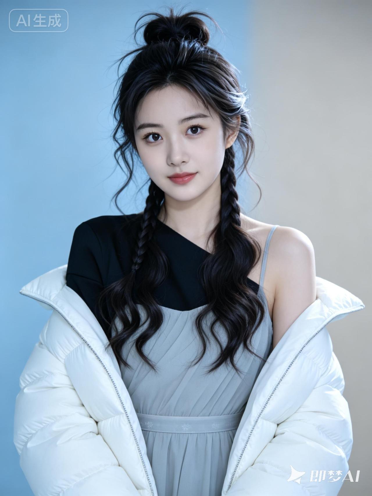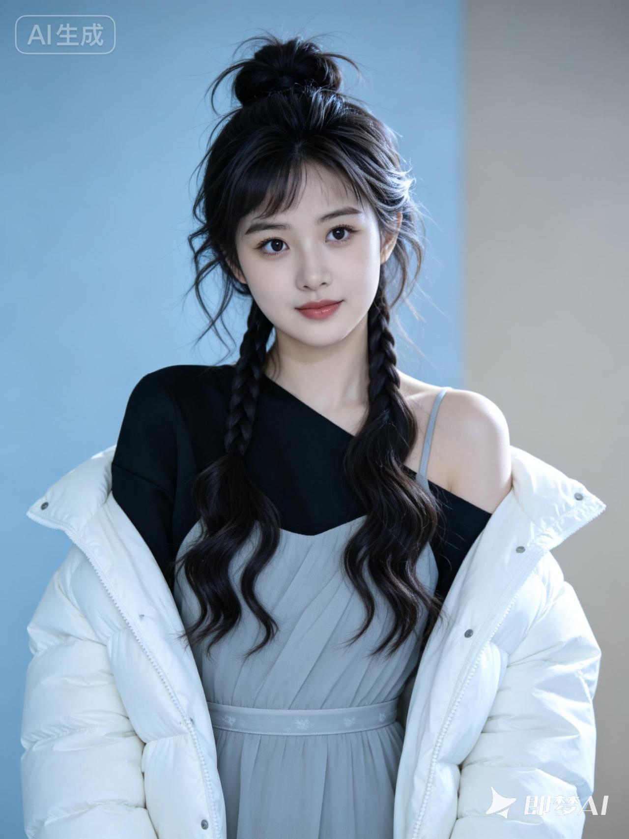 一位22岁的甜美女生,冷白皮,肌肤雪白有光泽,身材完美,黑色长发披肩,气质显瘦高