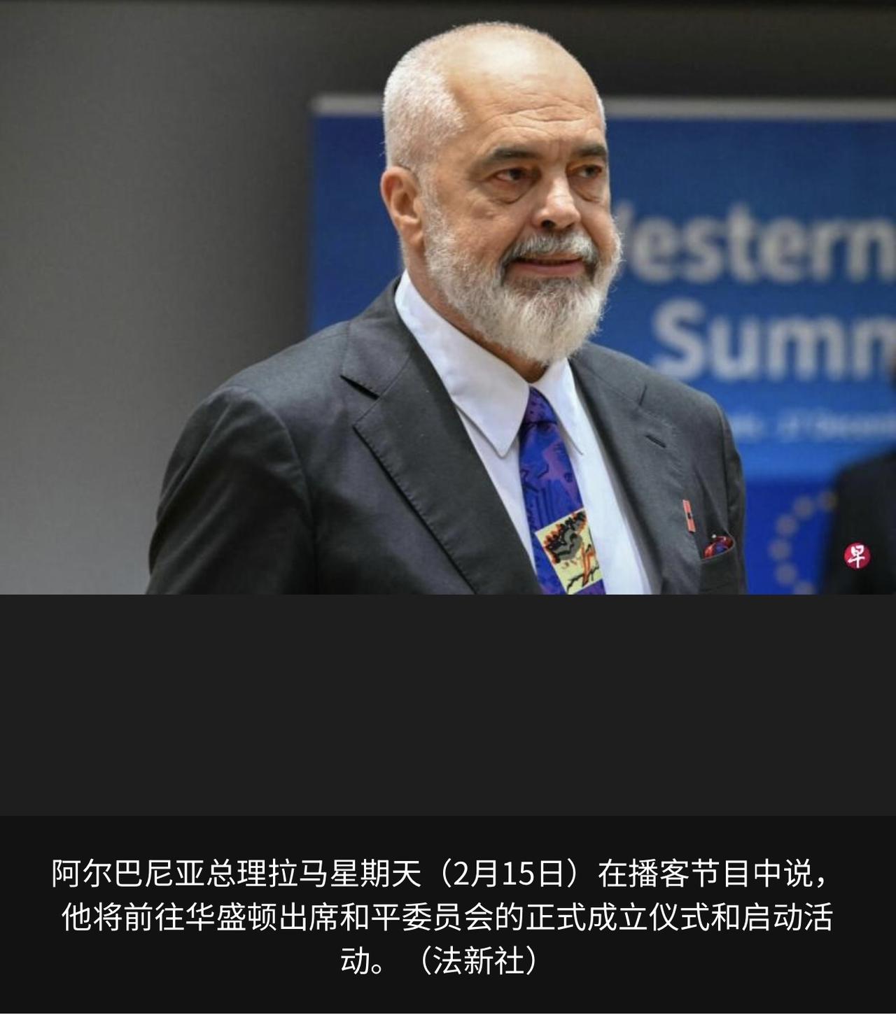 拉马2月15日表明:“我会赴华盛顿出席和平委员会的正式成立仪式和启动活动。” 罗马尼亚总统达恩同日说:“下周我会应美国总统特朗普的邀请,赴华盛顿参加和平委员会首次会议。” 委员会的首次正式会议定于2月19日举行,特朗普称,他所倡导成立的“和平委员会”创始成员承诺出资逾50亿美元用于重建加沙。他强调:“非常重要的是,哈马斯必须履行关于‘全面、立即解除武装’的承诺。” 美国官员日前透露,预计至少20个国家会派代表团出席会议,其中包括多国领导人。 特朗普1月22日在瑞士达沃斯启动他牵头成立的和平委员会。白宫此前说,约有35国同意加入和平委员会,但当天签字的只有19国,且集中在中东和南美洲,包括沙特、卡塔尔、阿联酋、巴林、阿根廷、巴拉圭等。匈牙利、保加利亚、科索沃、印度尼西亚等国也到场。美国传统盟友西欧国家则全体缺席。 以色列总理内坦亚胡2月11日在访问华盛顿期间宣布,以色列将加入特朗普力推的和平委员会。波兰和意大利已明确表示目前不会加入。