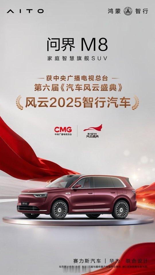 在第六届中央广播电视总台《汽车风云盛典》中,问界M8荣获“风云2025智行汽车”称号。作为重磅旗舰车型,问界M8深度融合华为乾崑智驾ADS 4与鸿蒙座舱,以30个高精度传感器构建全场景感知能力,实现跨屏幕、跨场景的无缝交互,为家庭用户带来“新豪华”智能出行体验。汽车风云盛典 截至目前,问界2025年累计销量超42万辆,单车成交均价位居新势力品牌第一,并多次获得品牌发展信心指数榜首,展现出强劲的高质量发展态势。面向未来,问界将持续深耕豪华智能电动汽车领域,助力中国汽车品牌在全球市场中实现更高水平突破。