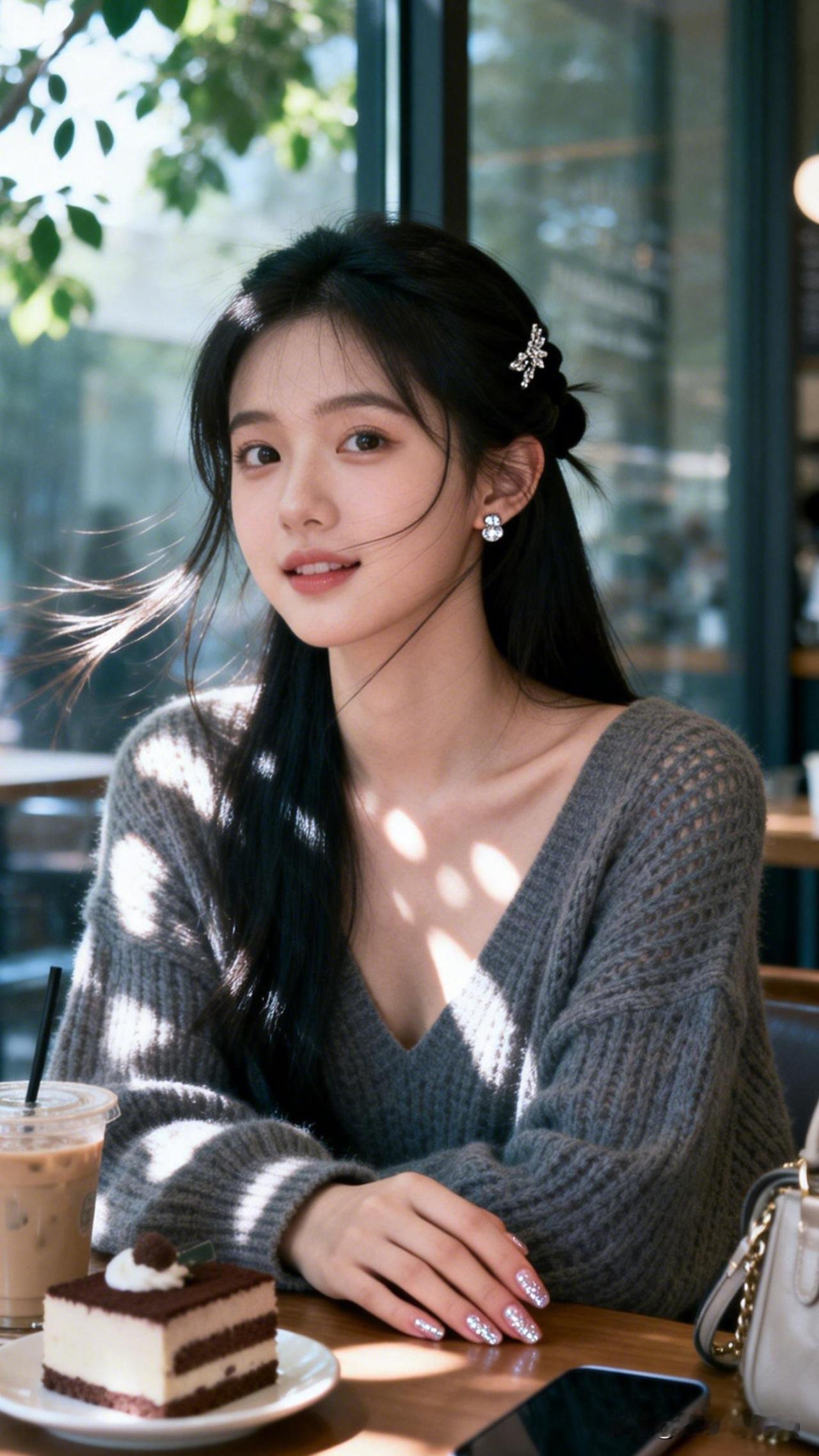 阳光洒进咖啡馆,甜美女孩享受悠闲时光🌞🍰📸善于微笑的女人,到底有多美丽